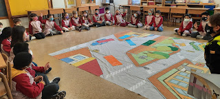 Ha portat una catifa que representa una part del nostre barri i entre tots hem après i recordat vocabulari d’educació vial i conductes correctes i incorrectes que es duen a terme al carrer.