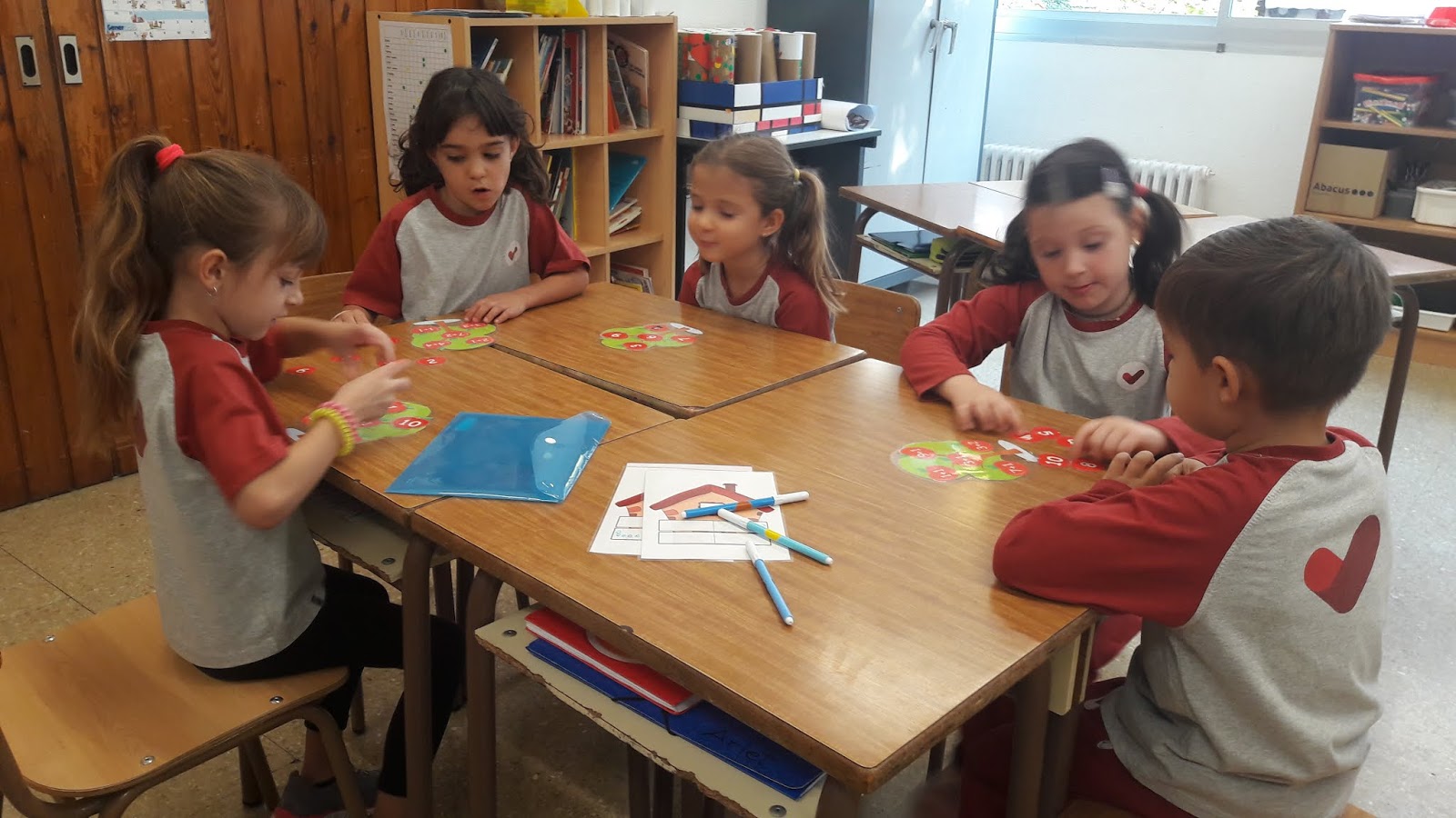 Per grups hem passat per quatre activitats diferents relacionades amb el treball de la suma, la descomposició dels nombres, els conceptes de quantitat més gran que… més petit que… o igual a…