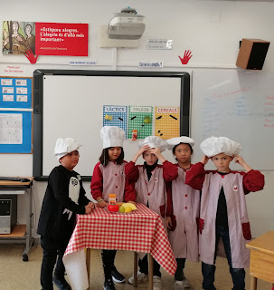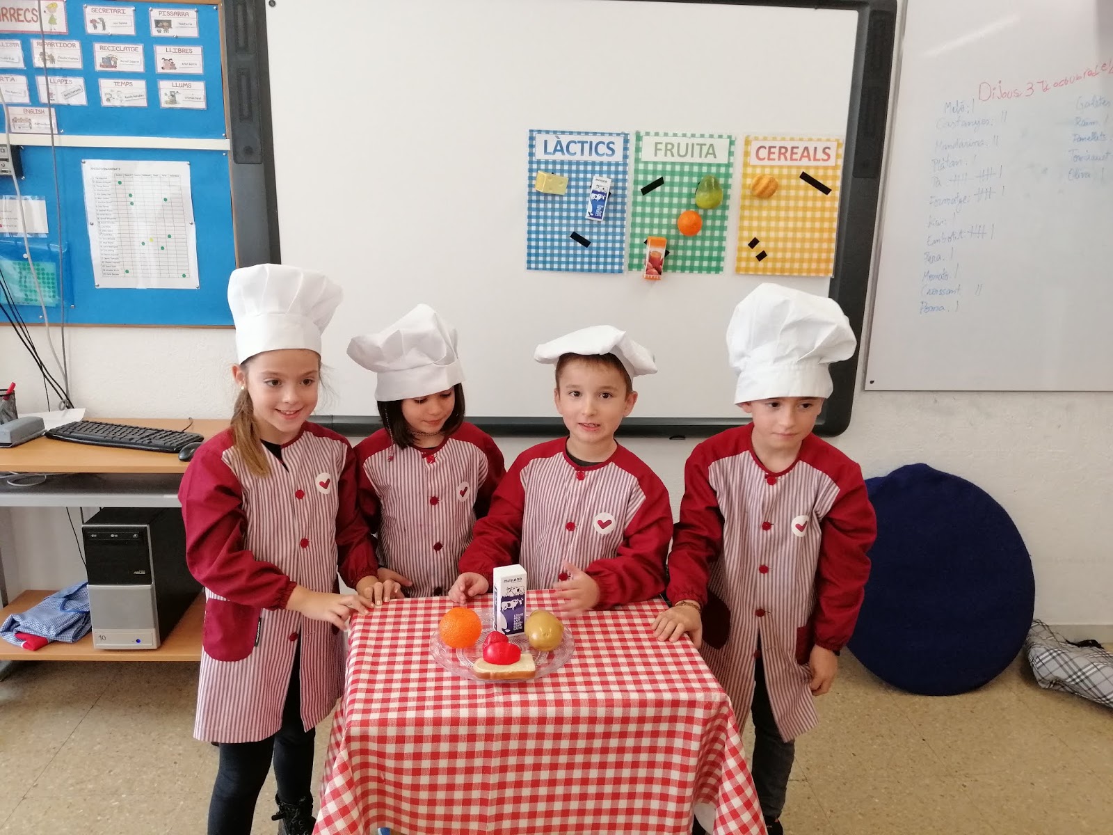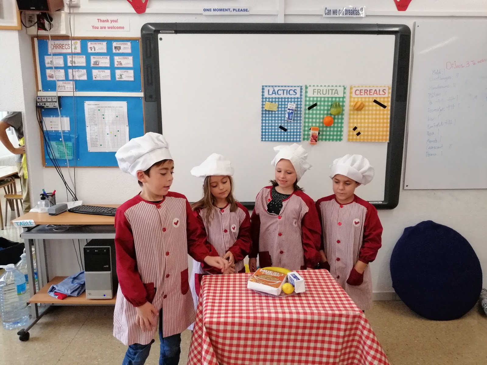 La classe dels Amics i la classe dels Detectius hem après com ha de ser un esmorzar saludable i què ens aporta cada grup d’aliments amb en Pau, l’expert en alimentació.