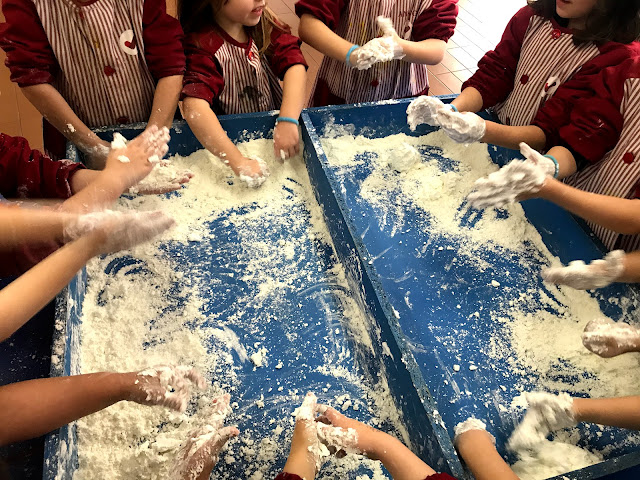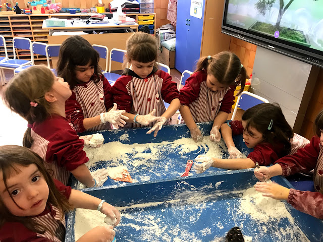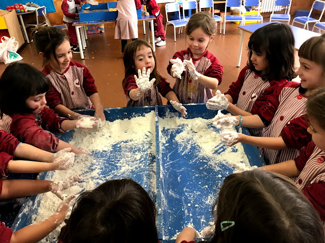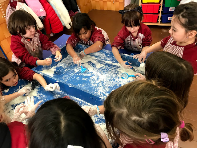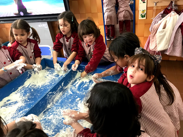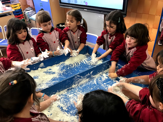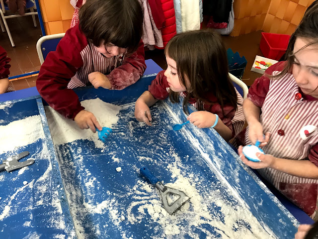 Winter is here! A l’ambient del Toca-Toca (aquest trimestre el fem en anglès) ha arribat l’hivern! Per celebrar-ho hem fet SNOW! Hem experimentat amb una textura molt semblant a la neu i s’ho han passat d’allò més bé. També hem omplert una safata d’experimentació de pasta amb fideus fins i gruixuts, macarrons i blat de moro (el fred ens porta a fer sopetes) i unes altres amb pa ratllat. Mireu que bé ens ho hem passat! SUPER FUN!