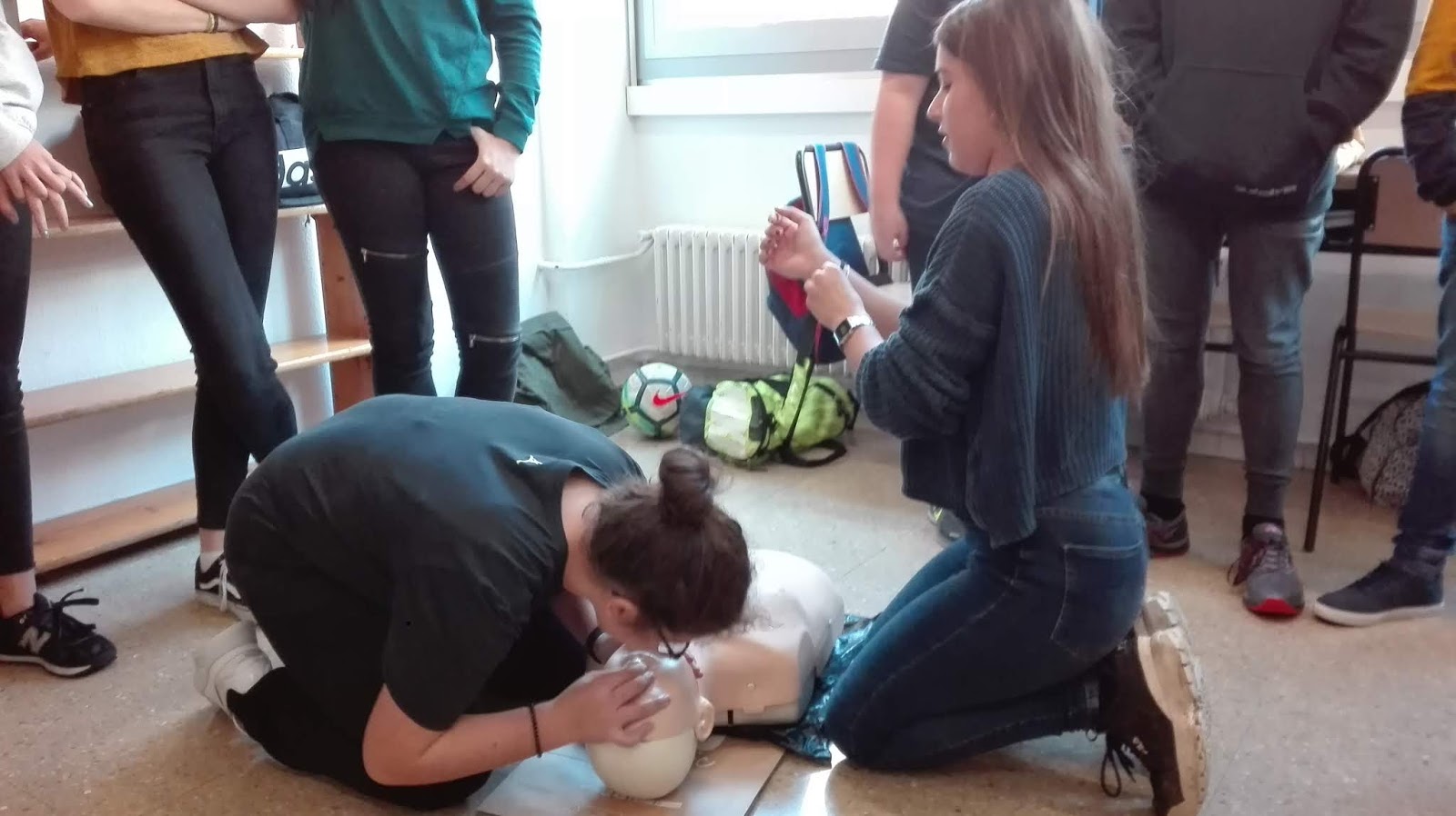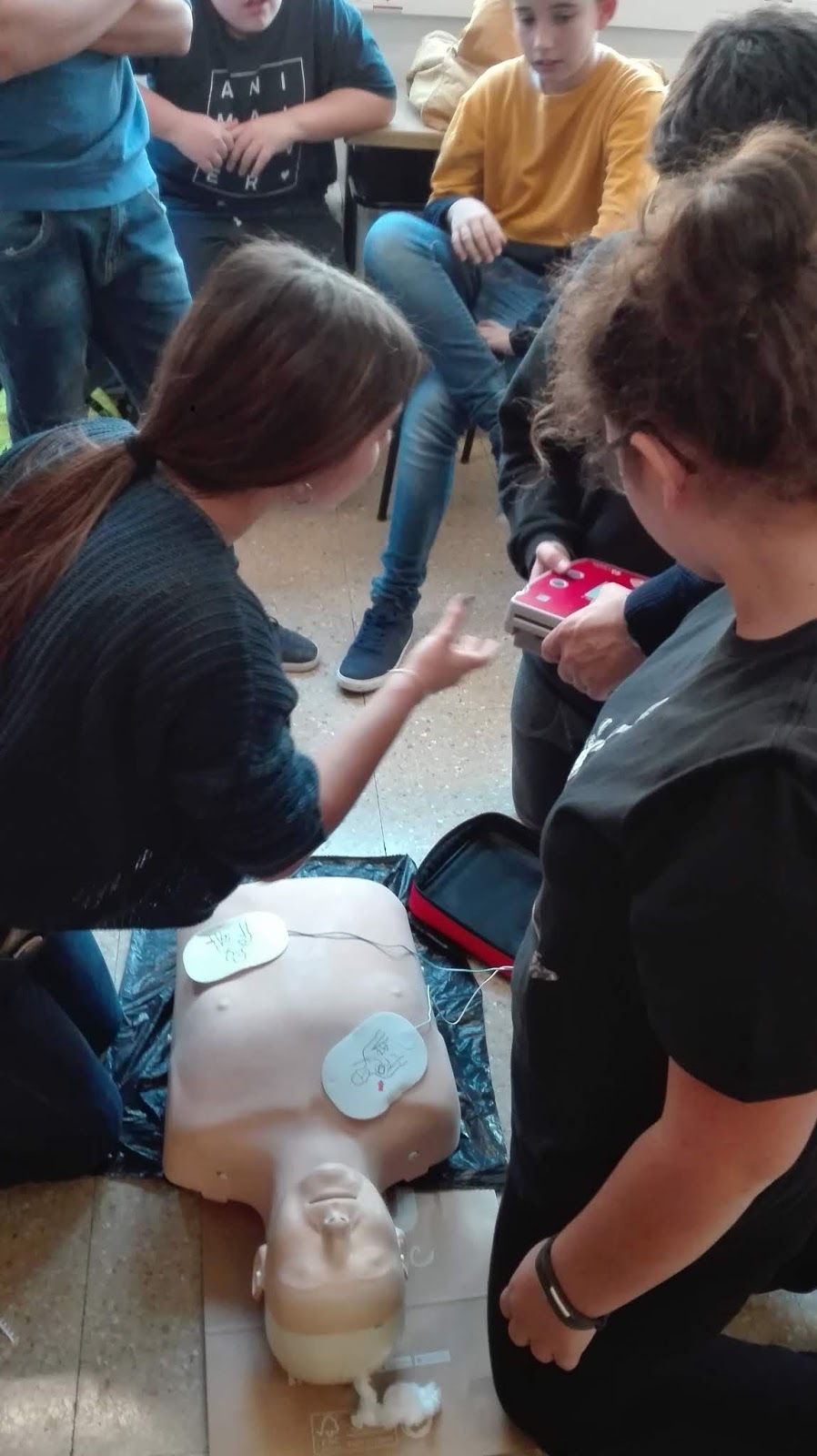 Aquestes sessions han estat teòriques i pràctiques. Els alumnes han après com han d’actuar davant d’una parada càrdio-respiratòria realitzant les compressions toràciques i les ventilacions a un “nino” que ens va facilitar el Roberto. També van aprendre a fer servir el DEA (desfibril·lador).