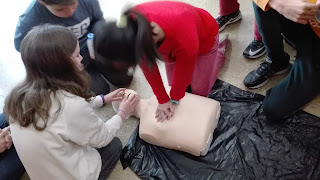 Un any més, el Roberto Martín, pare d’una alumna de 1r d’ESO, i treballador del Servei d’Emergències Mèdiques, ha col·laborat amb l’escola realitzant 4 sessions de SVB (Suport Vital Bàsic) als alumnes de 2n d’ESO de l’Optativa d’Educació per la Salut.