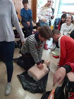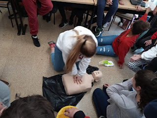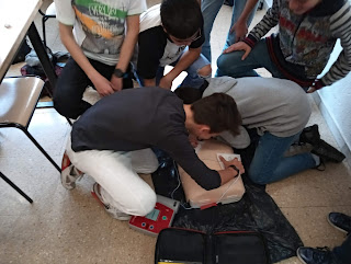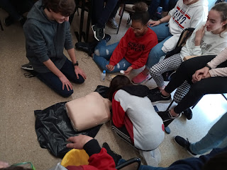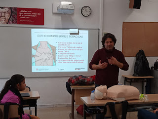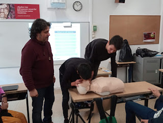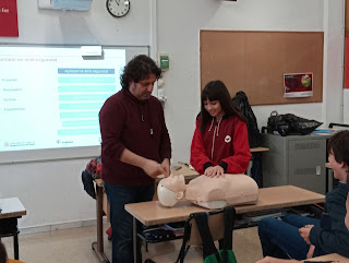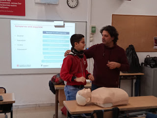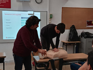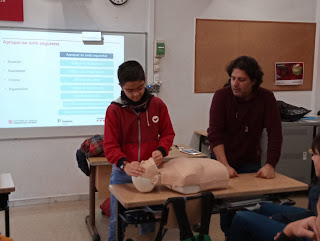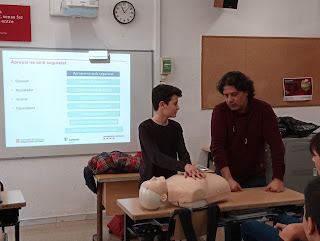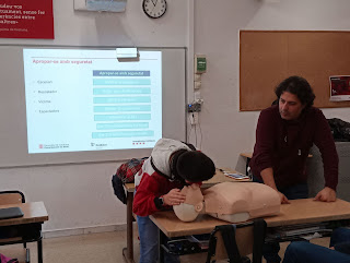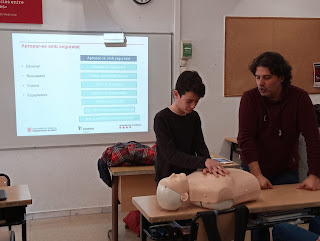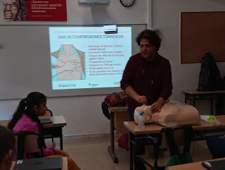 Un  any més el Roberto Martín, pare de la Martina Martín, treballador del SEM, ha col·laborat amb l’escola, a l’optativa d’Educació per la Salut a 2n d’ESO.