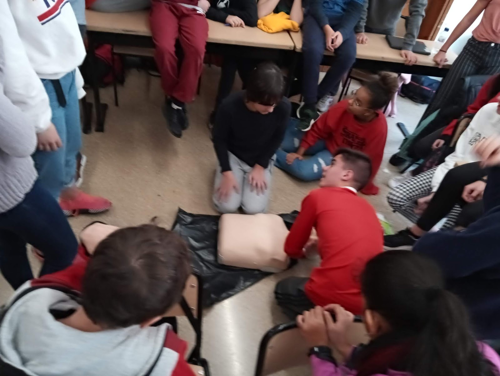 Els alumnes ha pogut practicar amb els “ninos” i el DEA com actuar davant d’una aturada cardiorespiratòria. Han estat unes sessions molt profitoses i tots hem après molt.