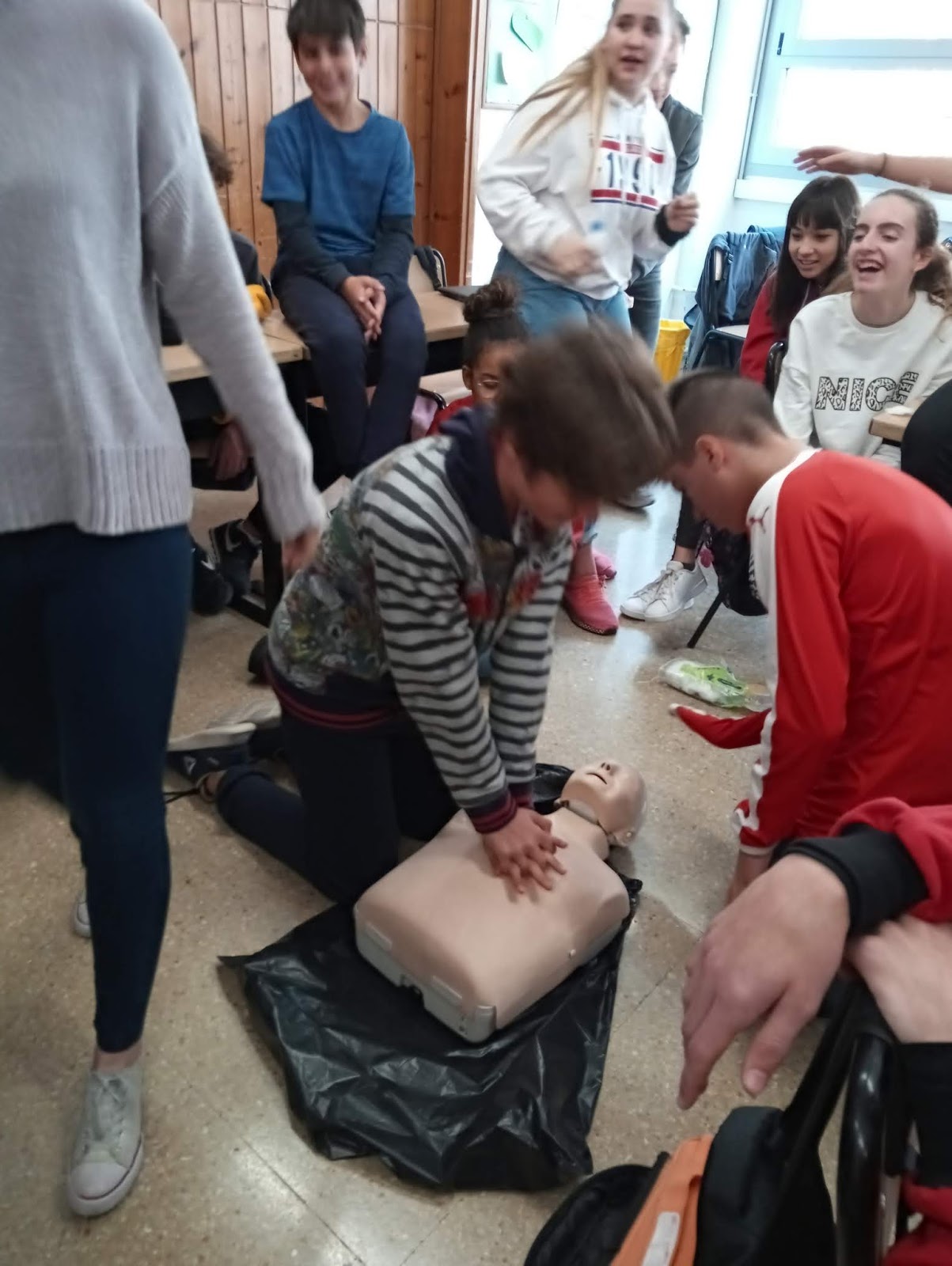 Durant 4 sessions teòriques- pràctiques ha explicat als alumnes els conceptes d’emergència, urgència, PAS, la cadena de supervivència, compressions toràciques, ventilacions, utlilització del DEA, maniobra d’Heimlich.