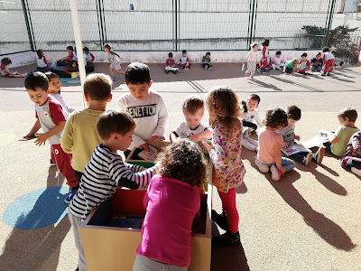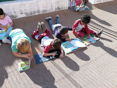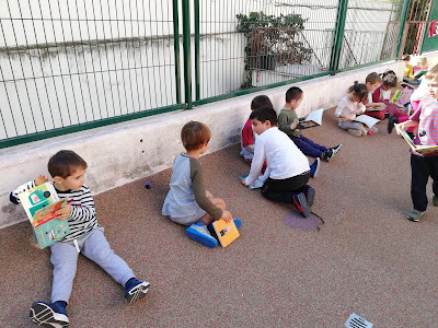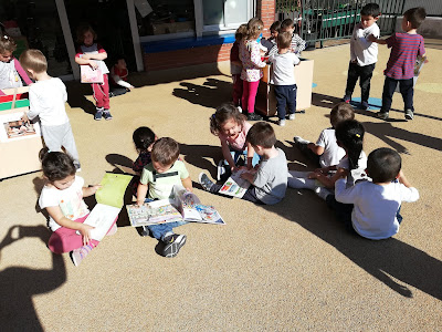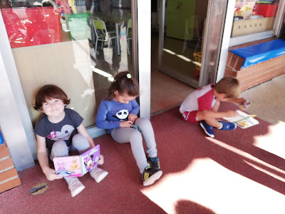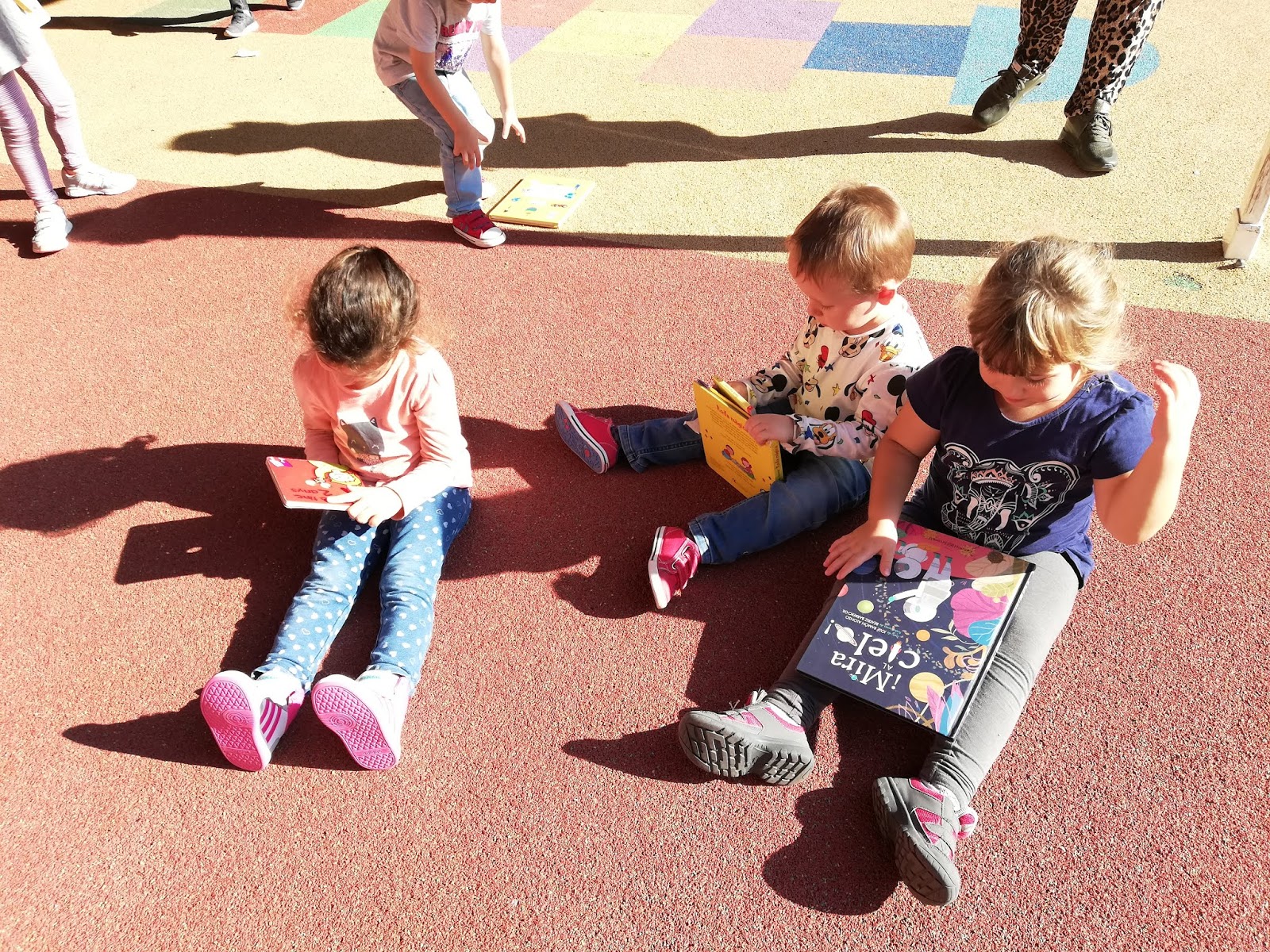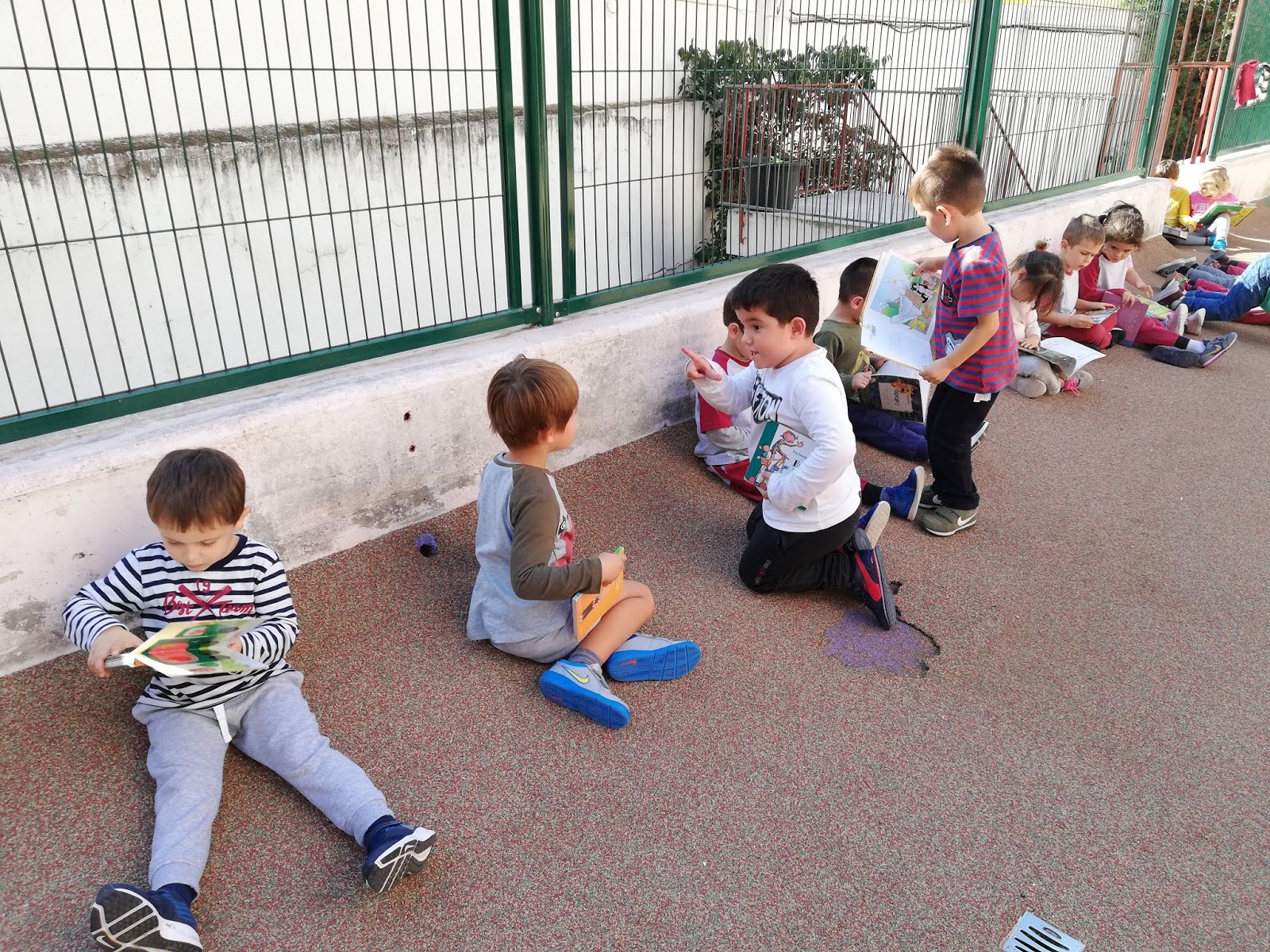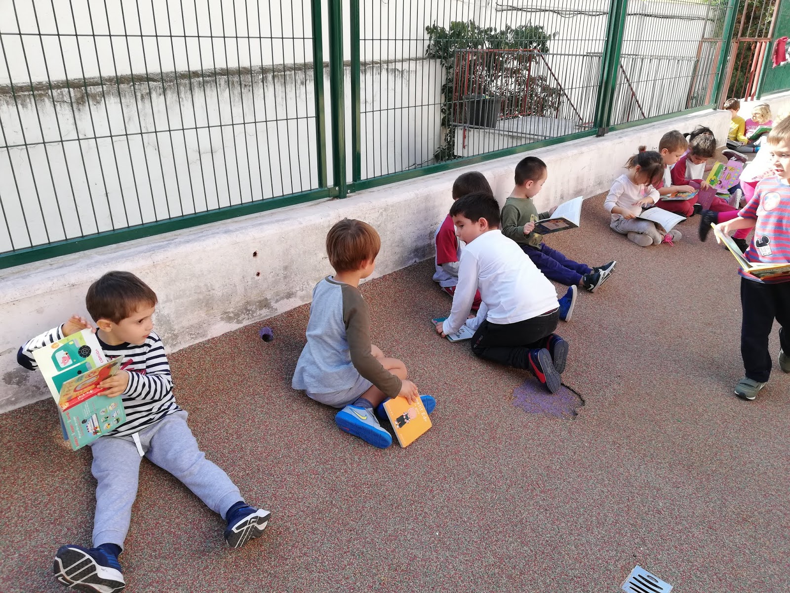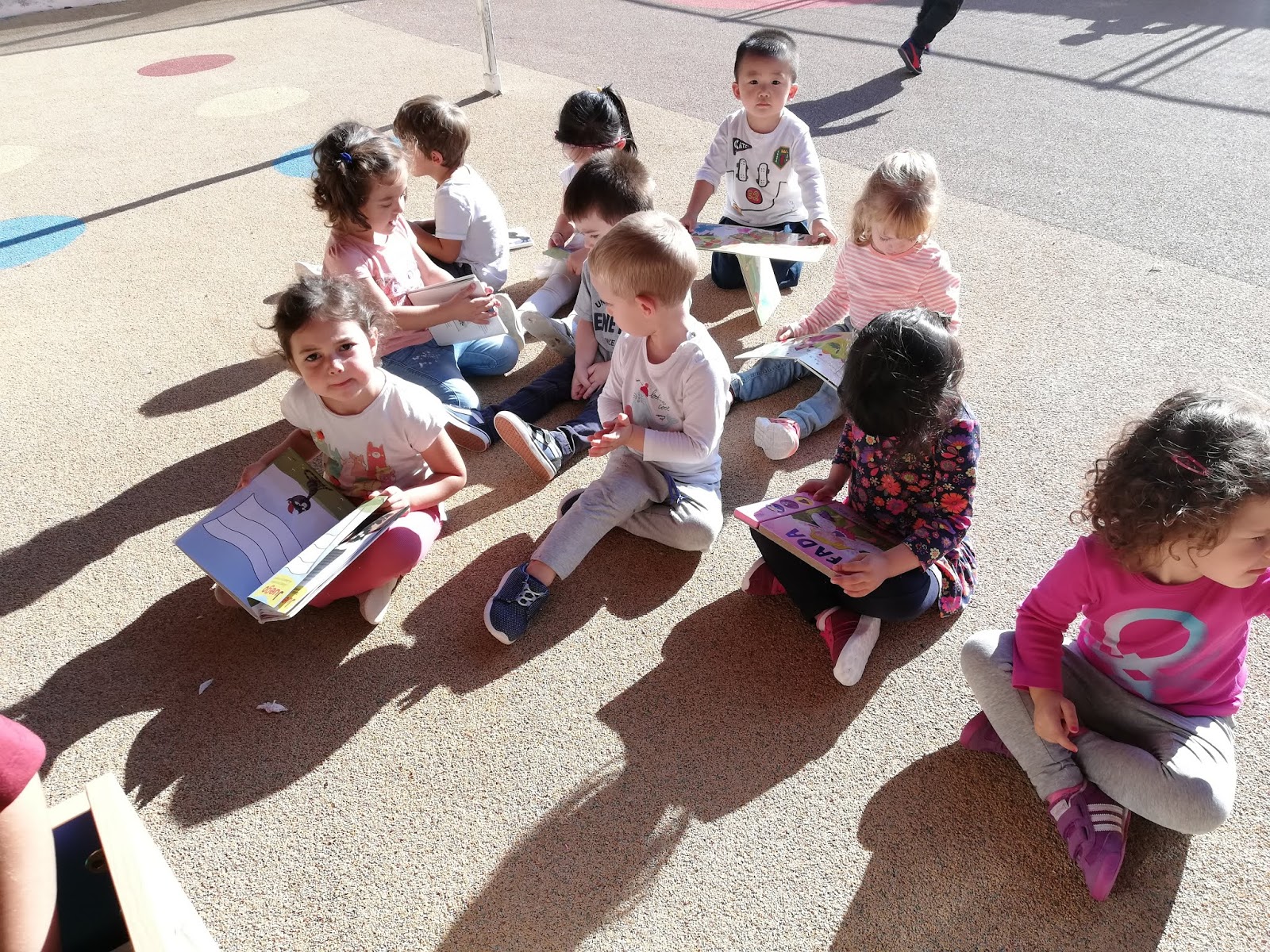 Vàrem aprofitar el bon temps per fer les primeres lectures en un ambient més lúdic i motivador i és que el treball amb els contes no només afavoreix la imaginació, la creativitat i la gestió de les emocions sinó que també desperta l’interès per la lectura i en fomenta l’hàbit!