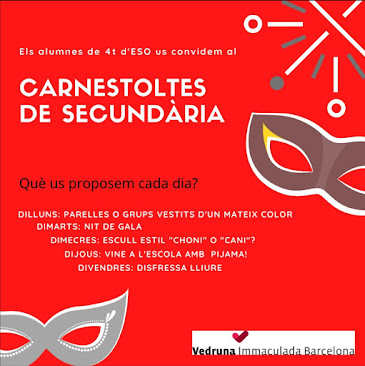 Els alumnes de 4t ens van proposar aquest any de cel·lebrar el Carnestoltes a la ESO. Així doncs, cada dia, hem vingut amb un complement diferent.