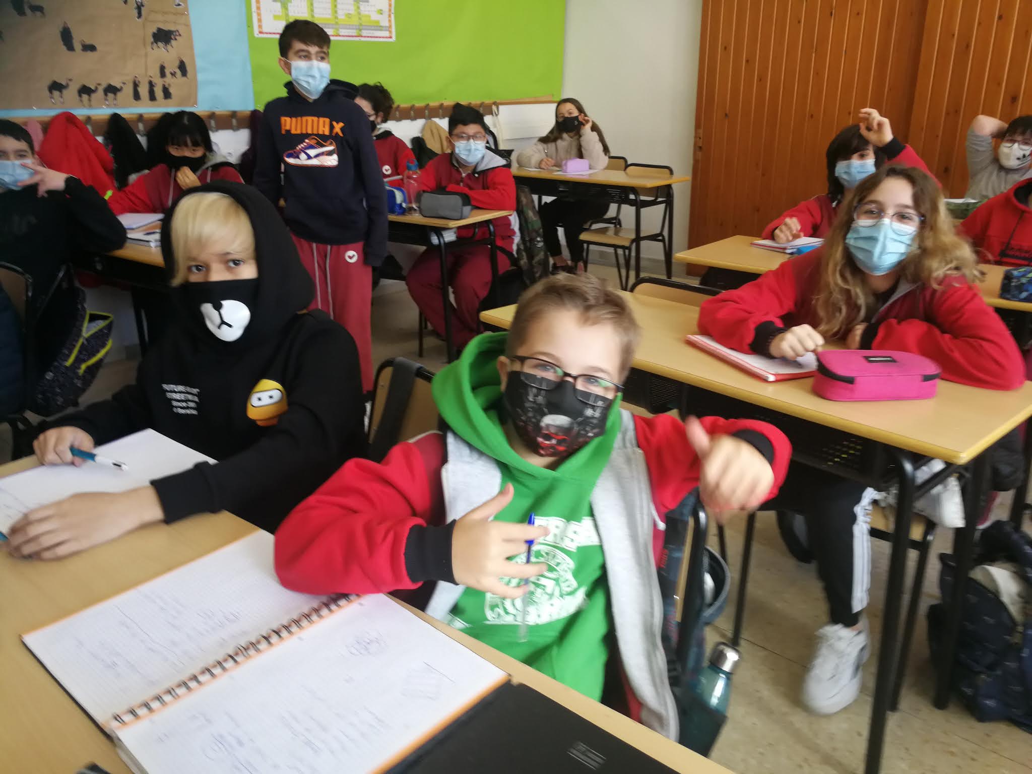 Tot i les condicions actuals i les dificultats del moment, estem contents d’estar amb l’escola oberta i poder fer classes amb normalitat. Les temperatures no acompanyen però els alumnes s’ho prenen amb força bon humor i si cal venen ben abrigats per a l’ocasió. La ventilació de les aules es fa contínuament i així tenim al virus controlat 💪 I un cop superat el primer dia, la temperatura de comfort a les aules ha anat millorant, fent tots els equilibris possibles entre la normativa i la realitat que ens toca viure.