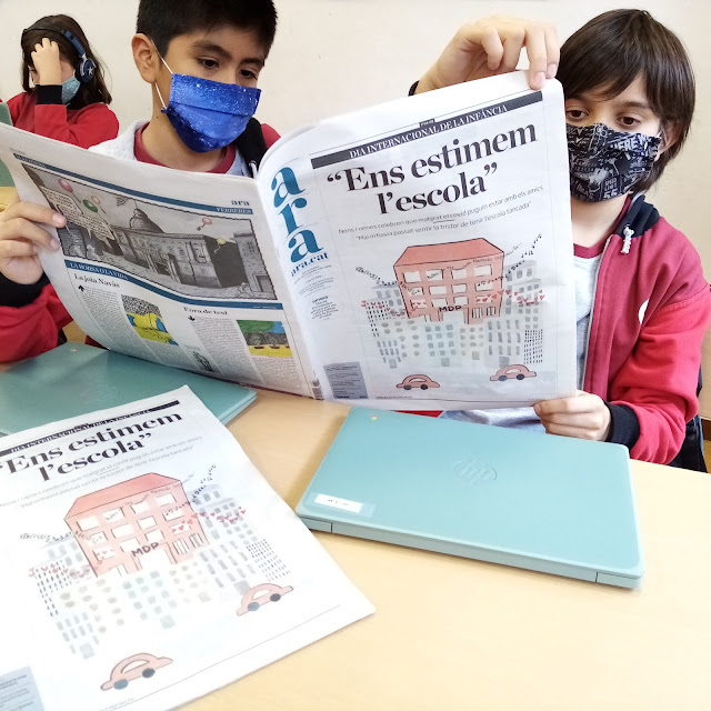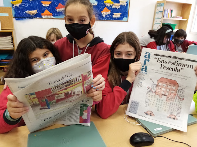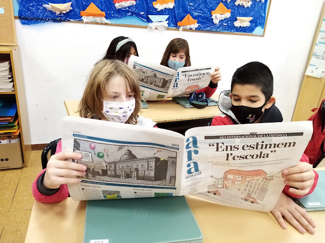 Avui, l’alumnat de cinquè i sisè hem llegit el diari “Ara”. La raó és que aquest diari sempre dóna protagonisme als infants en el Dia Universal dels Drets dels Infants. Hem llegit sobretot els escrits de nens i nenes com nosaltres que expliquen què els agrada de la seva escola. Hem vist que hi han col·laborat moltes escoles Vedruna. Celebrem aquest dia perquè tots els infants visquin amb dignitat.