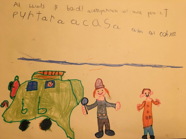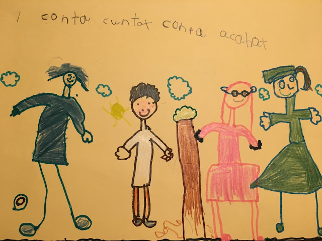 Aprofitant que estem treballant l’Unitat Didàctica de “Com sóc jo” i tenint en compte una conversa que vam tenir sobre les transformacions de les persones amb el pas del temps, se’ls va demanar que el conte tingués les paraules: nen/nena, pare/mare, i avi/àvia.