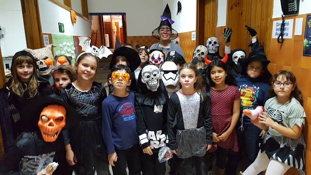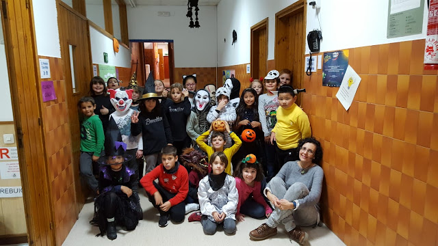 Ahir a la tarda els nens i nenes de primer, segon i tercer vam celebrar la Castanyada i Halloween. Primer de tot, ens vam vestir de castanyers, castanyeres, i els més grans es van disfressar amb complements terrorífics. Plegats vam anar a la sala d’actes a cantar les cançons que hem estat practicant aquests dies. Després vam fer un berenar conjunt amb panellets, moniatos i castanyes. Voleu veure com va anar la tarda?