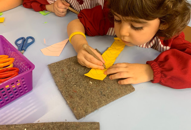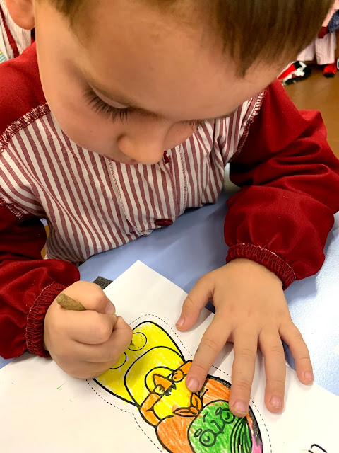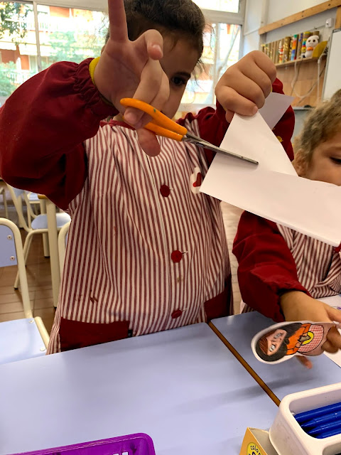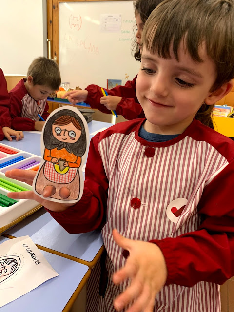 Amb motiu de la tardor i la castanyada, pintem castanyeres, les retallem i així tenim una petita titella!