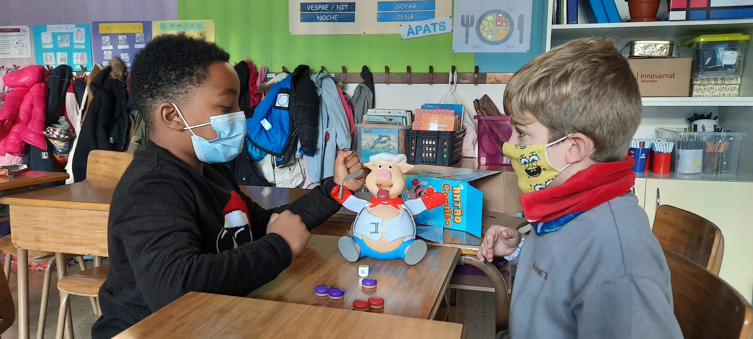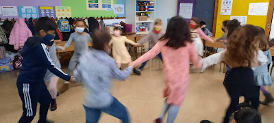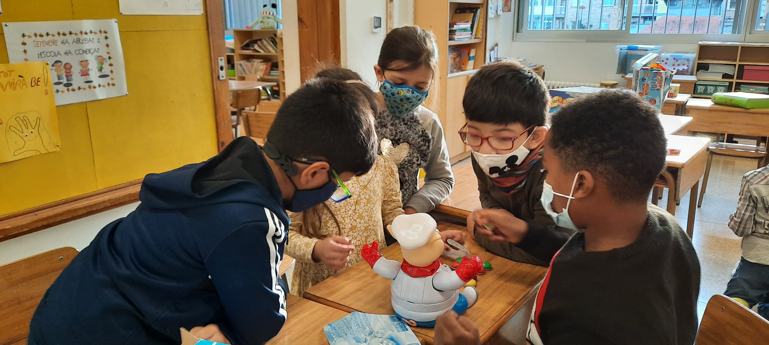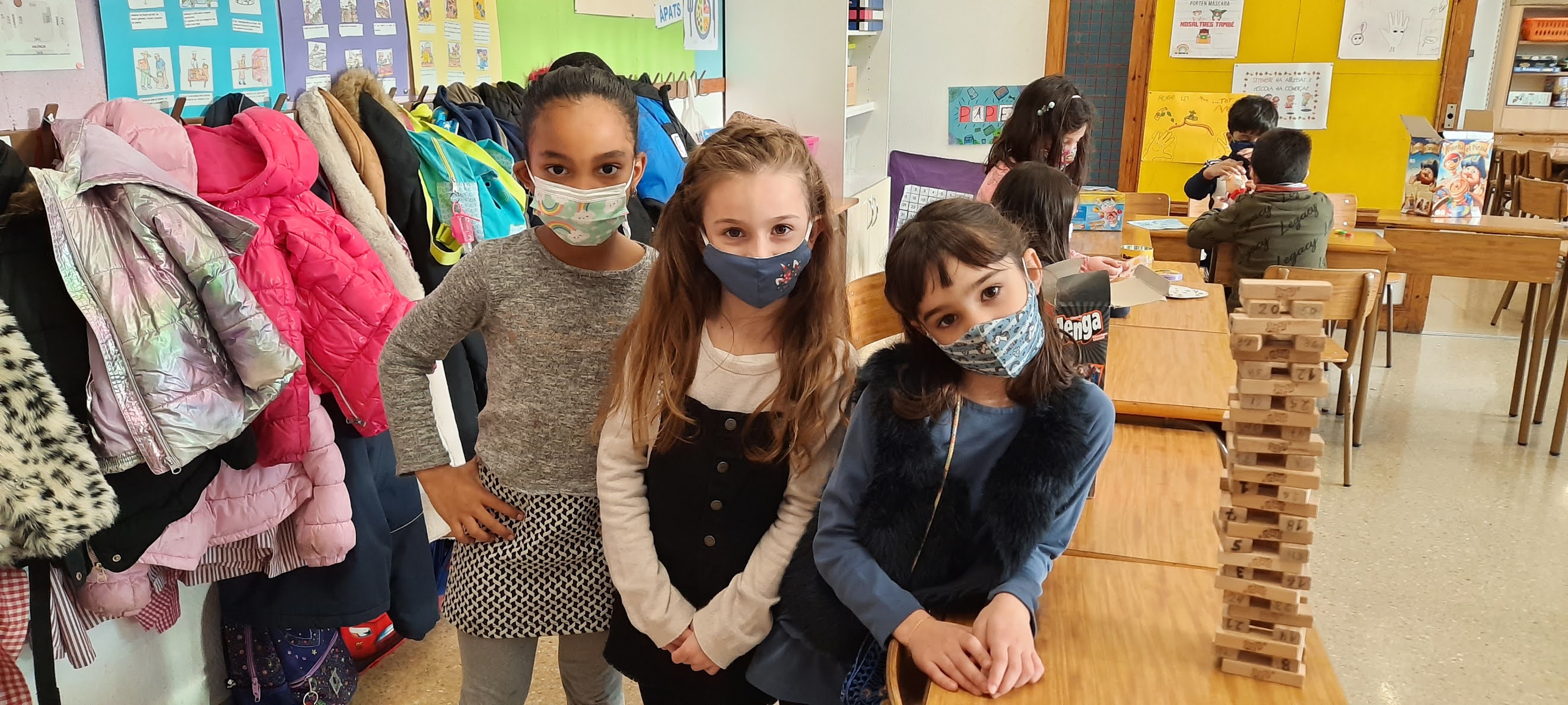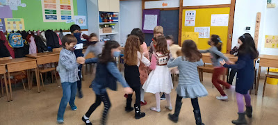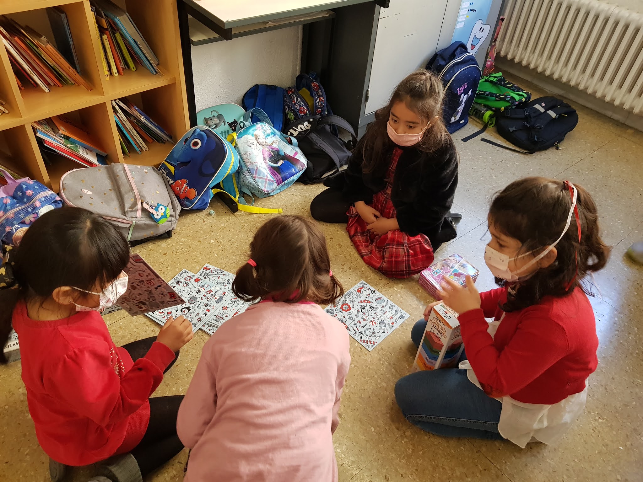 També hem decorat els blocs de formigó de davant de l’escola amb les nostres manetes per donar-li una mica d’alegria, hem jugat a jocs de taula i hem cantat i ballat a ritme de tot tipus de música!