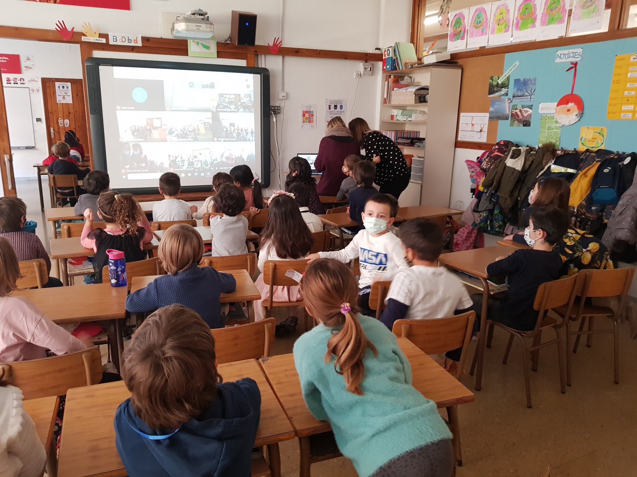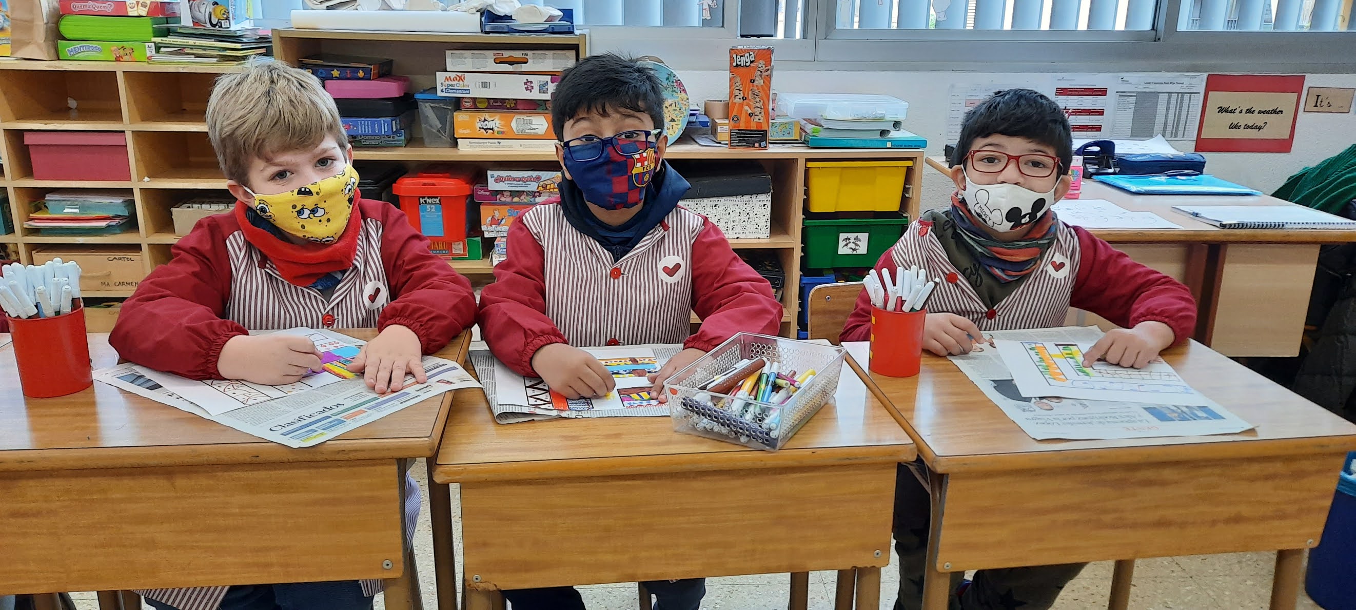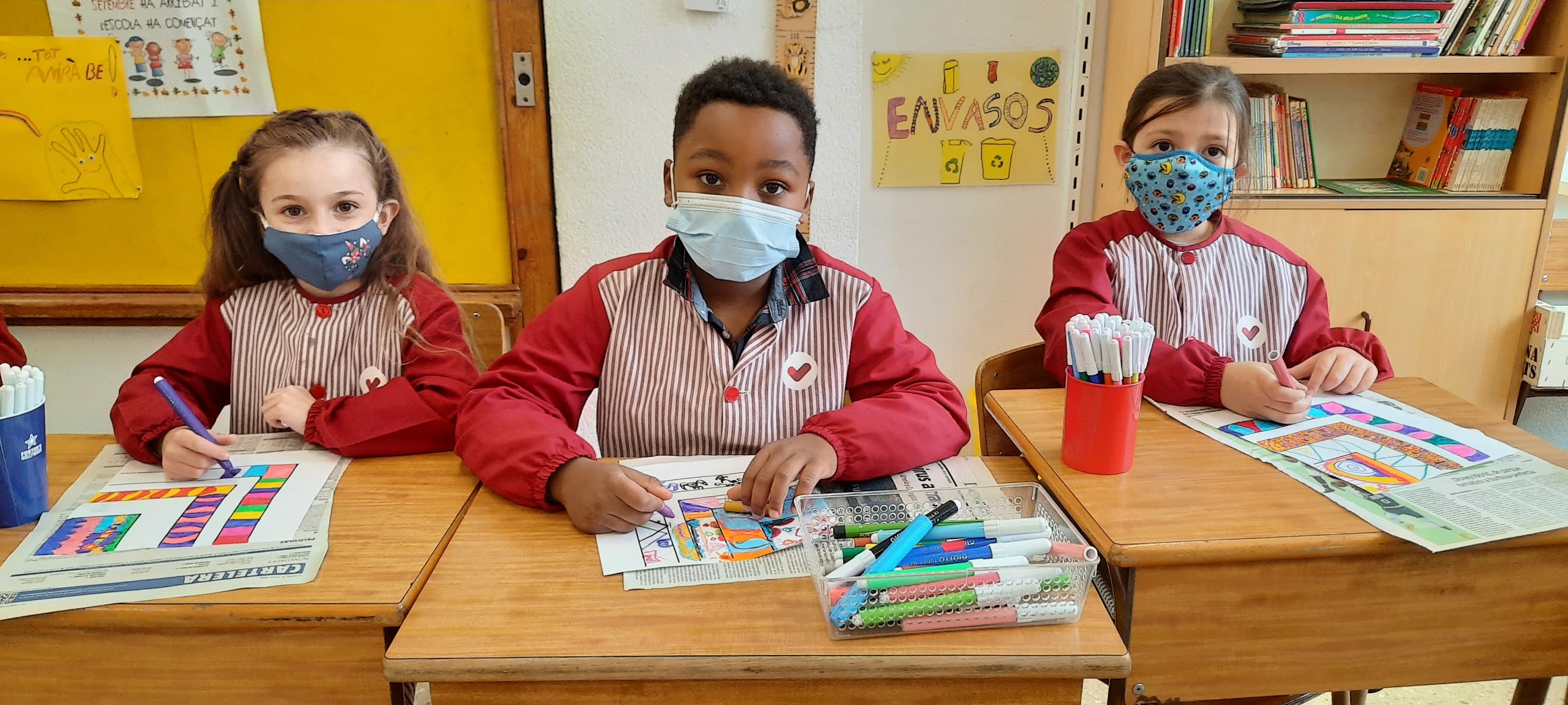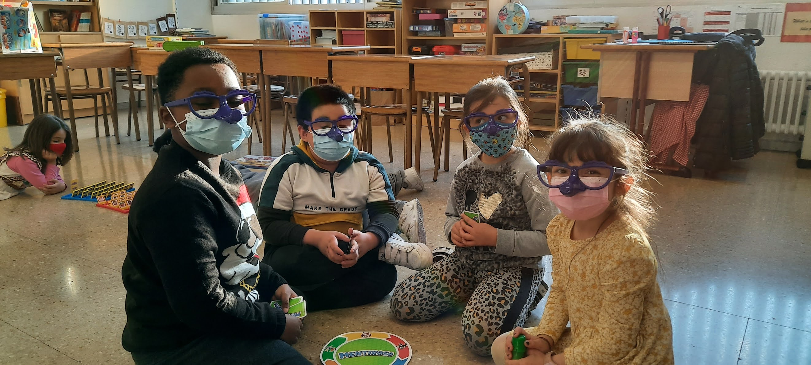 També hem decorat els blocs de formigó de davant de l’escola amb les nostres manetes per donar-li una mica d’alegria, hem jugat a jocs de taula i hem cantat i ballat a ritme de tot tipus de música!