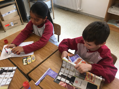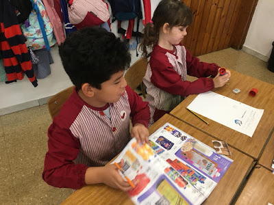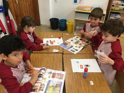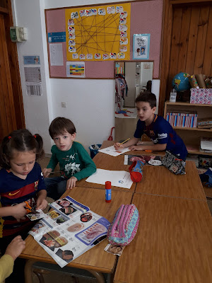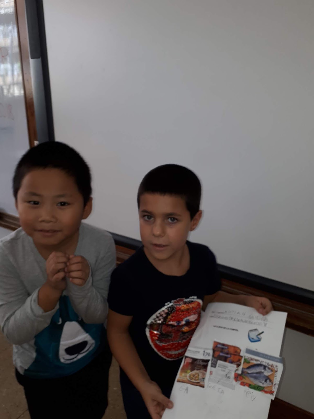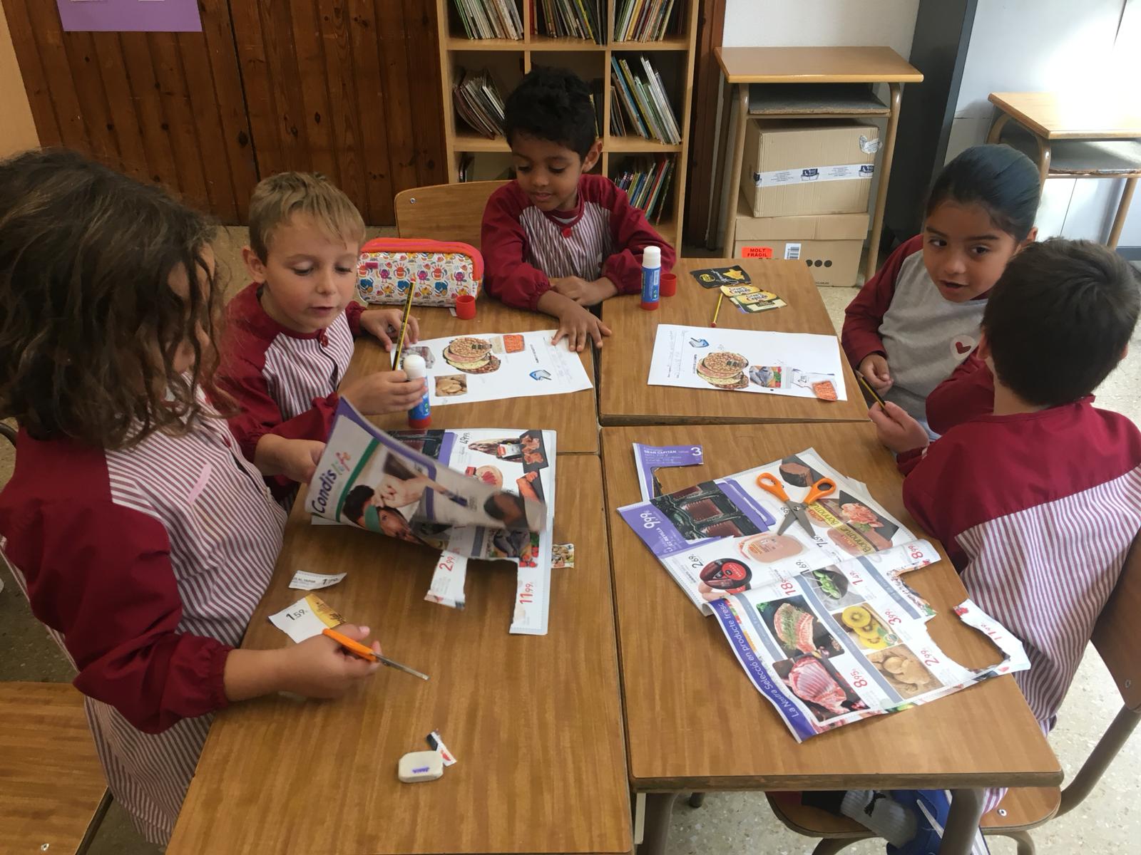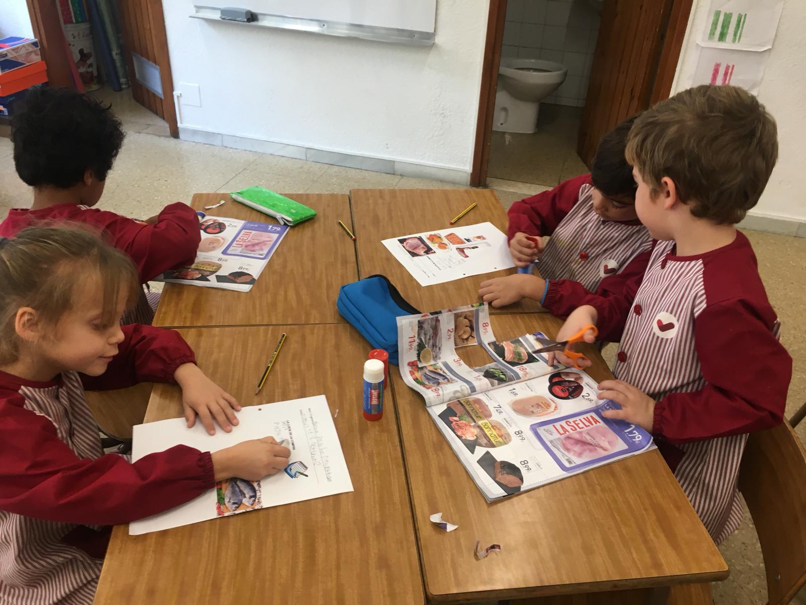 Ja fa uns dies, els nens i nenes de primer vam ajudar les nostres mestres a fer la llista de la compra. Per parelles vam agafar revistes de diferents supermercats i vam buscar aliments d’ús quotidià. Els vam retallar i els vam enganxar a un full. Després vam escriure el nom d’aquell aliment.