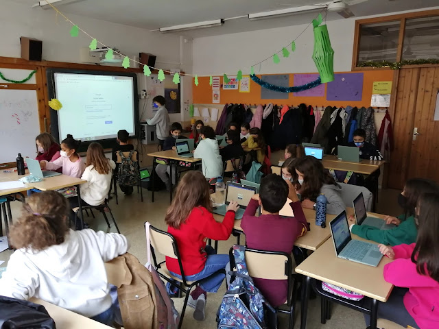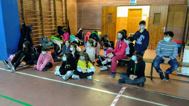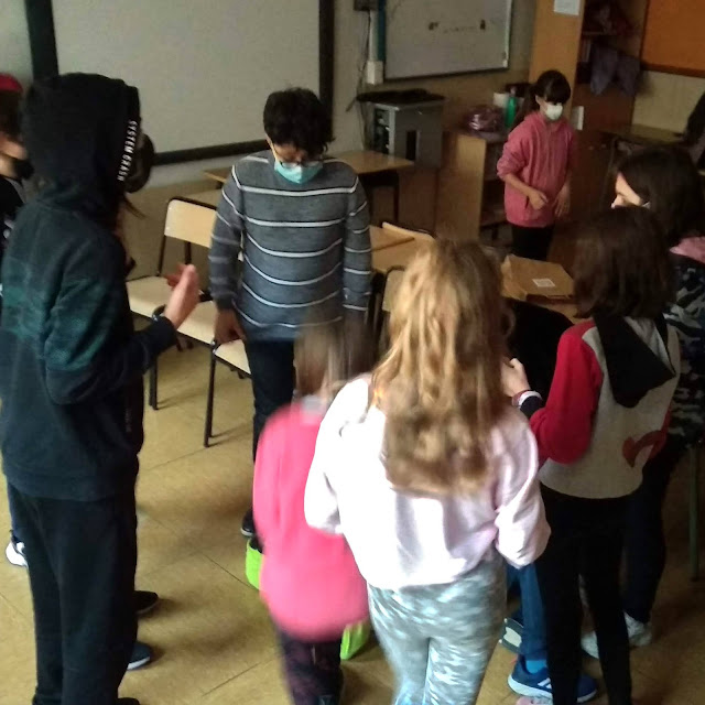 El grup B va adaptar el vídeojoc “Among Us” a l’aula. Abans del pati van dedicar uns 45 minuts al joc que tradicionalment anomenem “L’assasí” o “L’infiltrat”. Aquí podeu veure els directors dels joc i un moment del mateix.