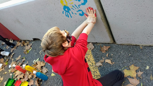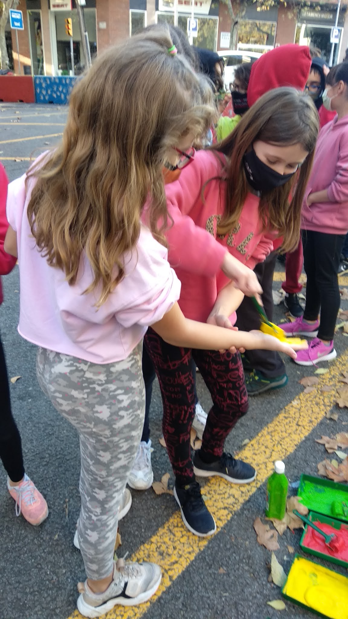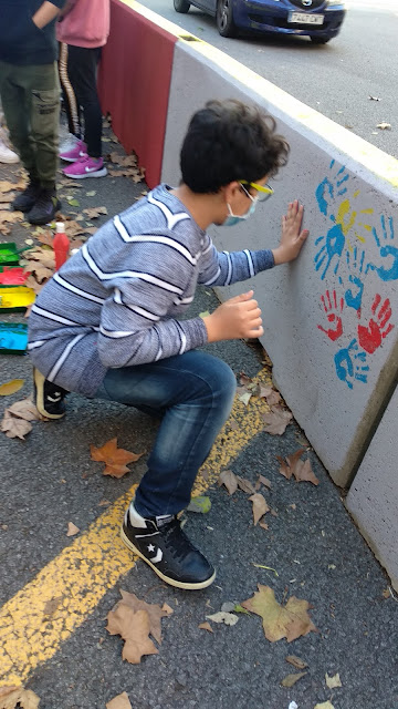 Per la tarda van prendre part en la intervenció plàstica de tota l’escola per decorar les barreres New Jersey que protegeixen l’àrea de trobada a l’exterior de l’escola.