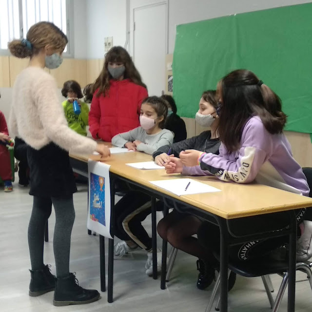 El grup A ha preparat la decoració de l’aula per al Nadal. Després del pati han fet un concurs de diferents quizz elaborats per ells mateixos. Ho han anomenat “Gimcana de preguntes”