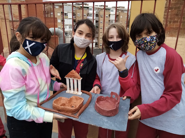 Durant part d’aquest trimestre hem estudiat l’edat antiga i les grans civilitzacions del món clàssic. 5è A s’ha centrat en l’antiga Grècia, i s’han fet expertes i experts en filosofia, jocs olímpics, arquitectura, art, mitologia i religió i estructura social. 5èB s’ha encarregat d’aprofundit en l’imperi romà i el seu exèrcit, els territoris que van conquerir, l’estructura de la seva ciutat i de la seva societat, i el seu art i arquitectura.