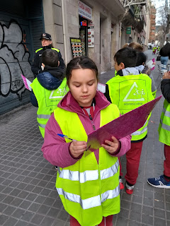 Dos de Maig,carrer Cartagena, carrer València i el carrer Mallorca. La Isabel i el Cristian ens van donar un paper i quan vam sortir vam haver d’omplir-lo. En aquest paper havíem d’escriure comportaments cívics i incívics dels vianants i els elements de seguretat que hi trobem al carrer. També ens van donar un mapa i el vam seguir.