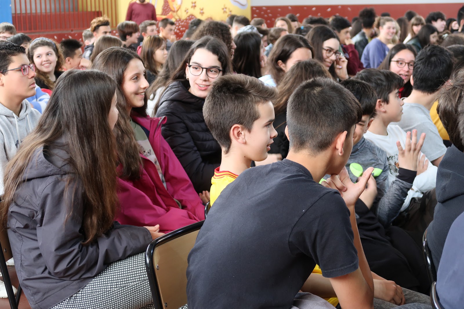 I afegim imatges de la celebració, amb tot l’alumnat de Secundària al pati de l’escola, transformat en escenari del lliurament de premis del certamen literari.