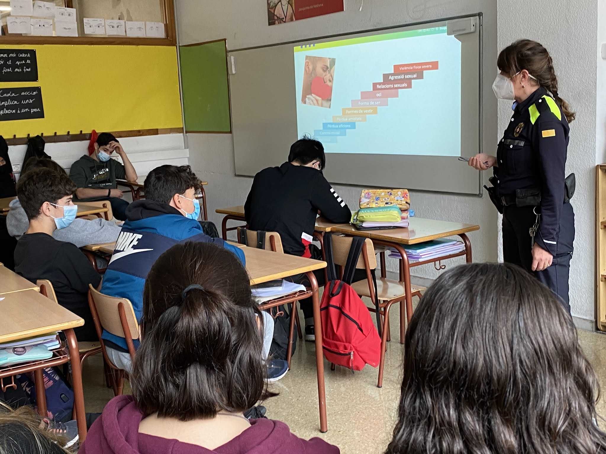 Durant aquesta darrera setmana, la Guàrdia Urbana ens ha visitat a tots els cursos de l’ESO, per parlar de la violència de gènere, dels perills de les xarxes socials, del bullying, i sobre la prevenció de l’alcohol i drogues.