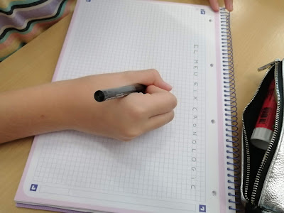 Hem estat debatent sobre l’any “0”, sobre el recompte del temps, sobre els esdeveniments que els historiadors han definit com a prou trencadors i suficientment potents com per fer acabar una edat històrica i fer-ne començar una altra. Sovint no ens plantegem els perquès, i si ho hem entès o no, només ho memoritzem. Aquests dies, a classe estem intentant fer-ho més concret i menys filosòficament, i la forma que estem treballant-ho, és intentant fer la seva pròpia línia del temps, cercant moments de la seva vida, situant-los en un any de la petita línia del temps després del seu naixement, (que en realitat, en la història de la humanitat seria el 2007) I permetent 12 anys enrere del seu naixement. Com que no recorden res anterior als 3 anys, i molt menys d’abans d’haver vingut a aquest món, han de demanar col·laboració a casa, parlant amb els avis, els pares, o els seus germans grans. És a dir que tota la família hi té un paper important, i alhora fan un apetita recerca històrica familiar, prenent consciència d’on ve la seva família.