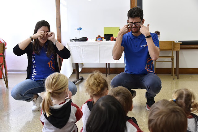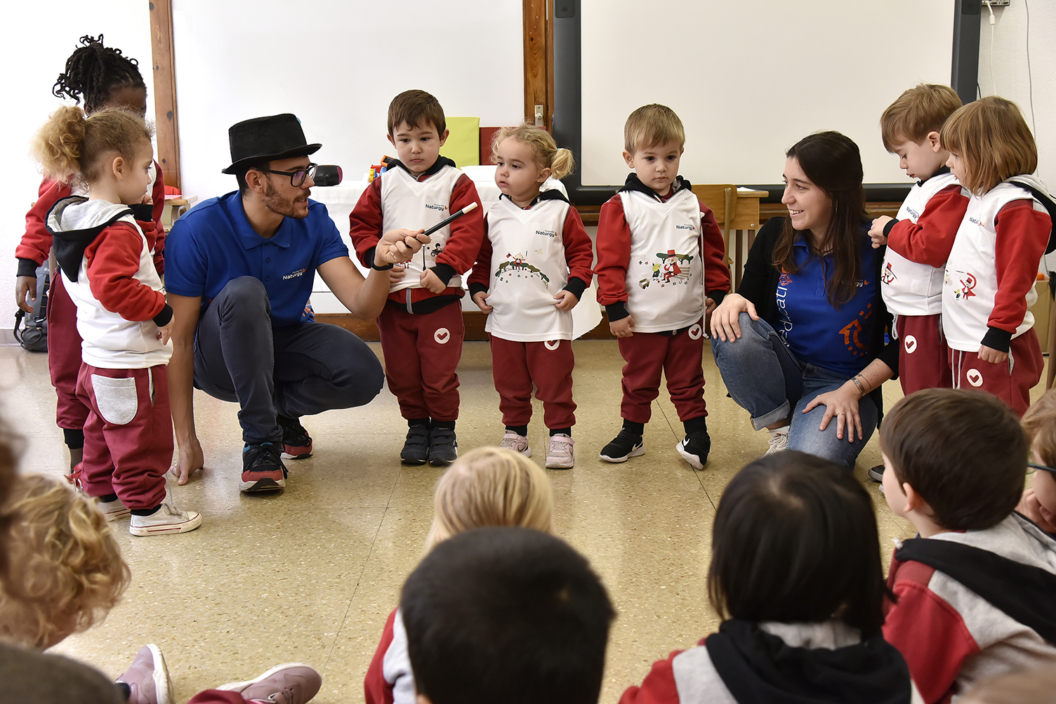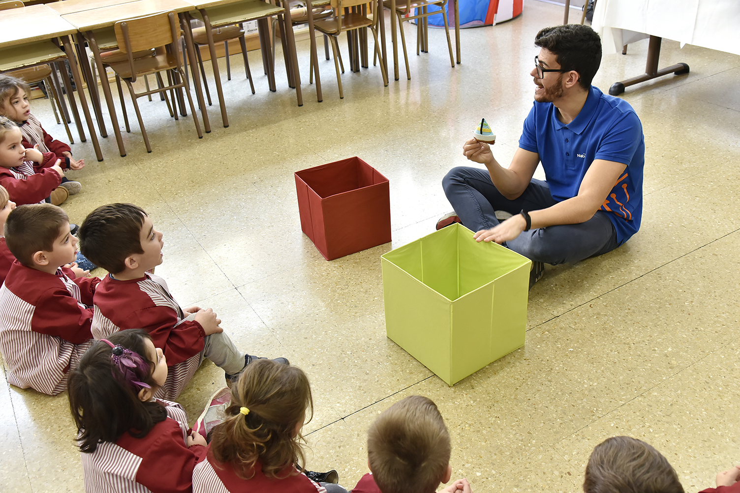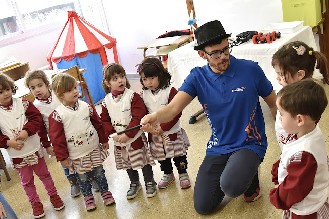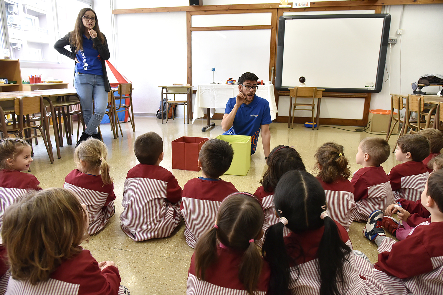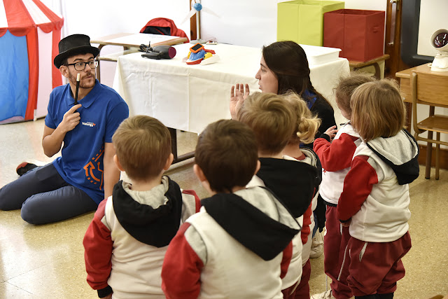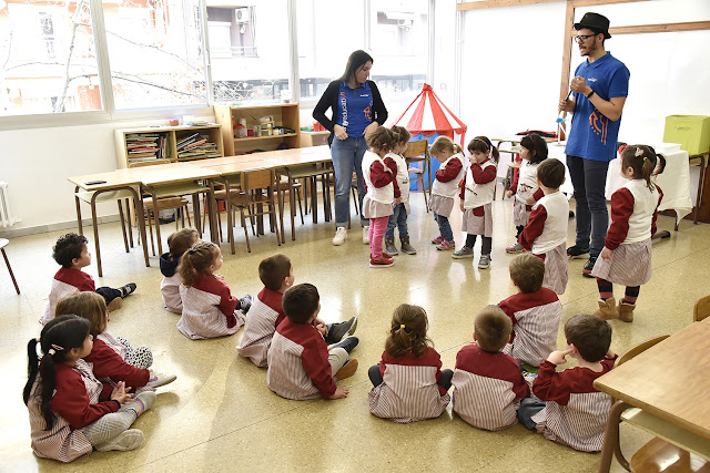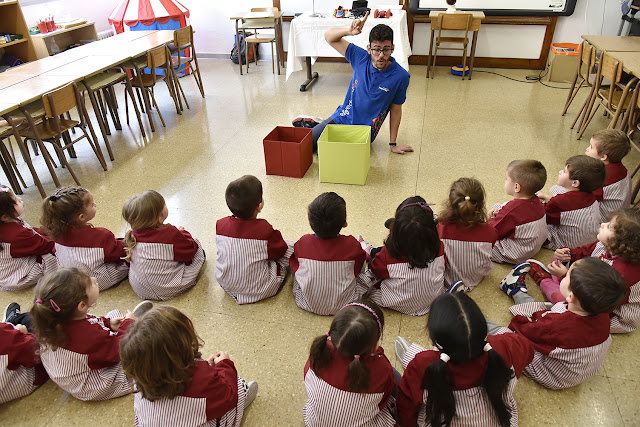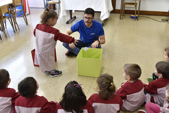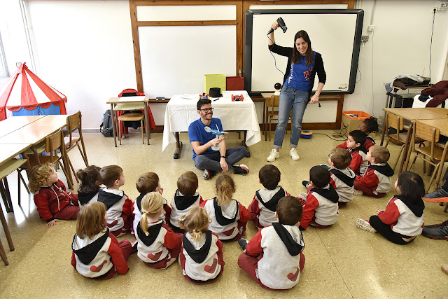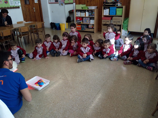 La segona activitat que vam fer, va ser l’explicació d’un conte amb unes samarretes molt boniques i originals. Vam sortir uns quants voluntaris i cadascun/a ens vam posar la samarreta que representava una escena del conte. En el conte hi havia el mag Maquefi que amb la seva bareta màgica feia desaparèixer el fum dels parcs, de les escoles, etc.
