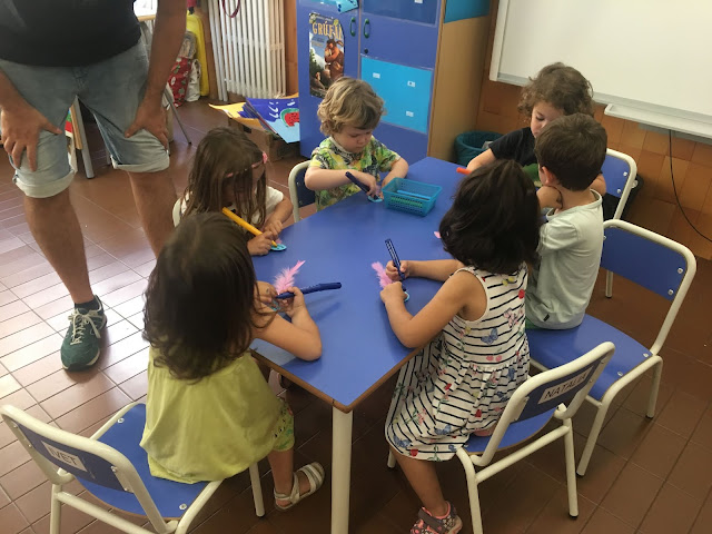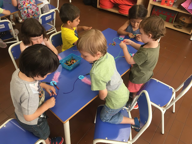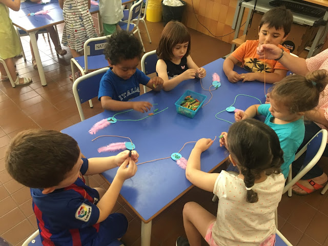 I avui a la tarda hem fet l’activitat! Primer hem elaborat un collaret super xulo de macarrons i plomes, com si fos d’indis. I després, per ambientar-nos, ens han pintat la cara. Per últim, hem cantat la cançó de “John Brown era un petit indi”, podeu veure un trosset en el vídeo!