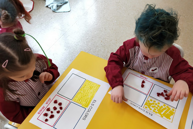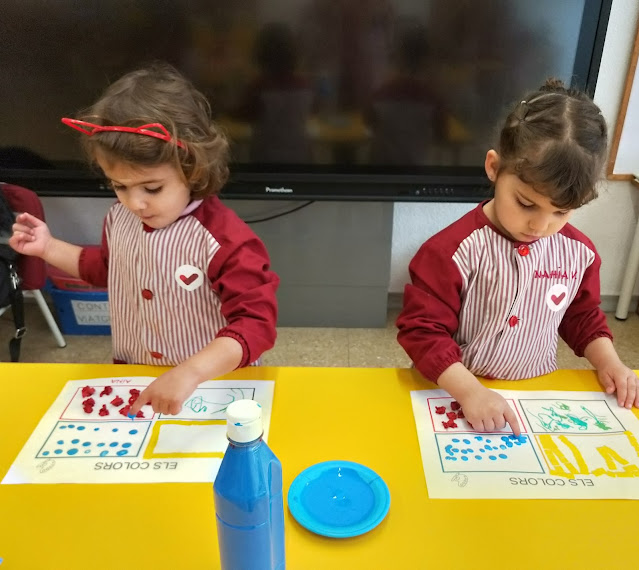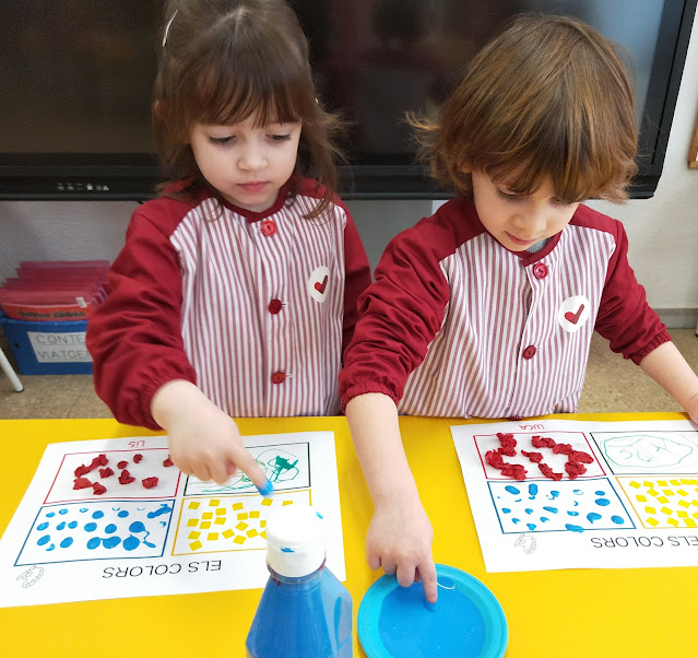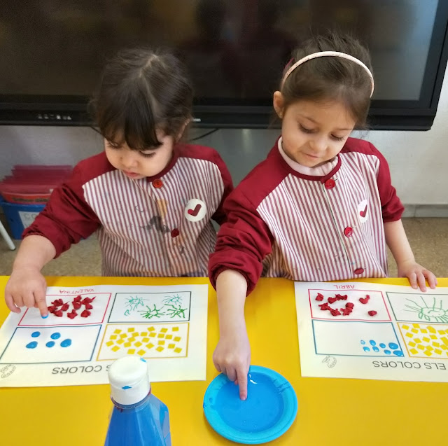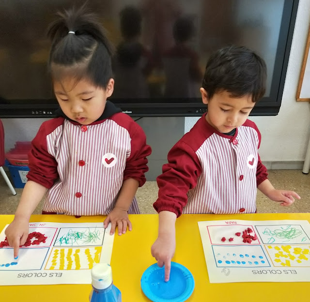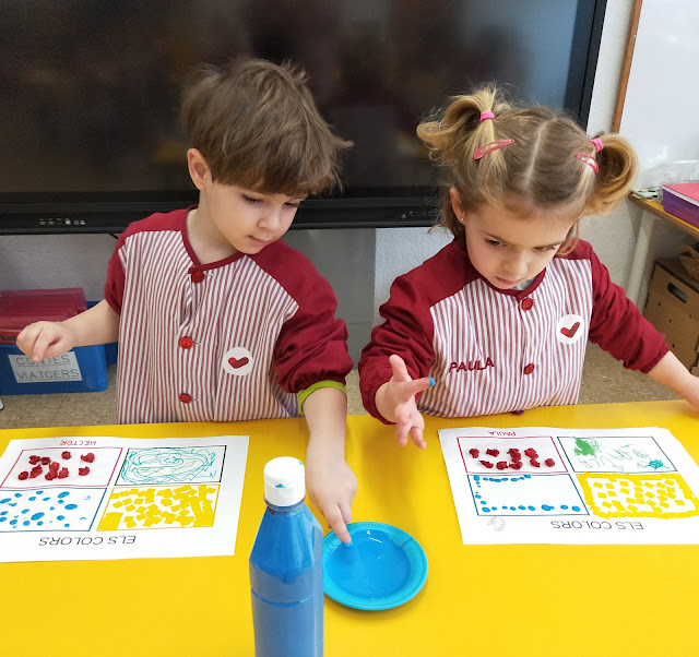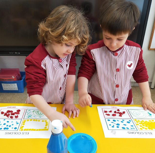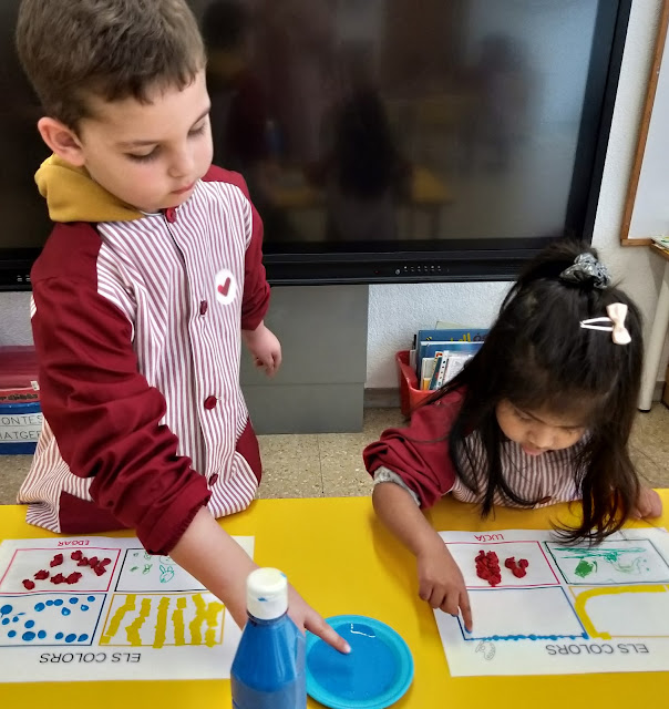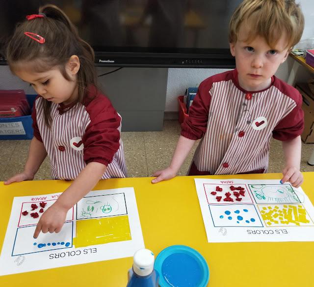 Estem treballant els colors i aquesta és una de les activitats que hem fet utilitzant diferents tècniques.