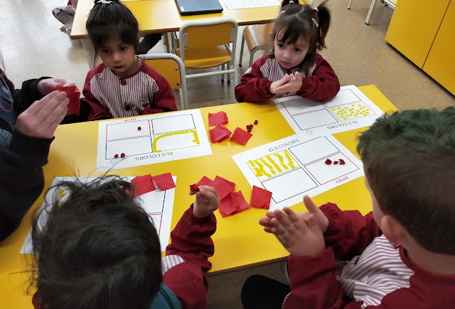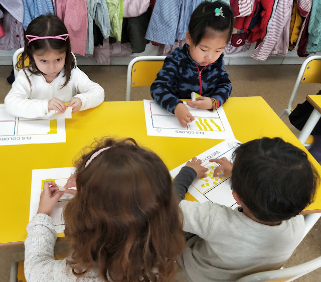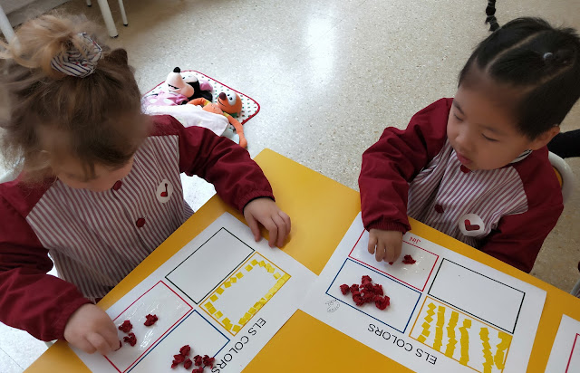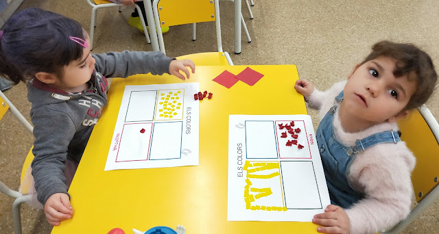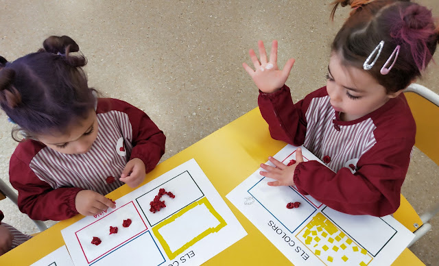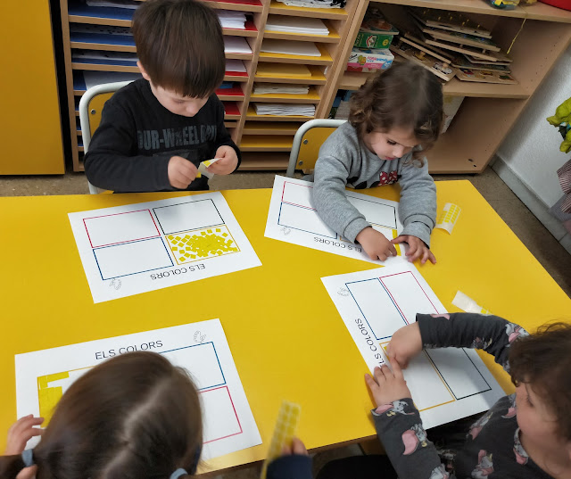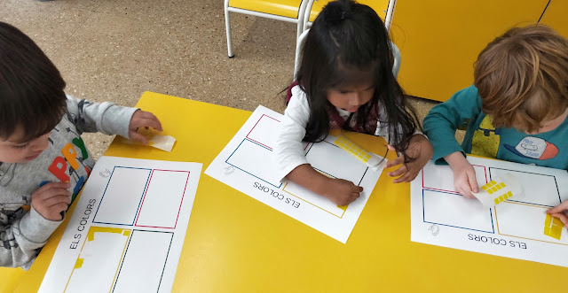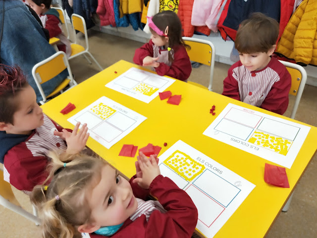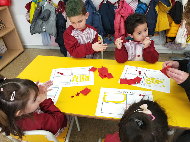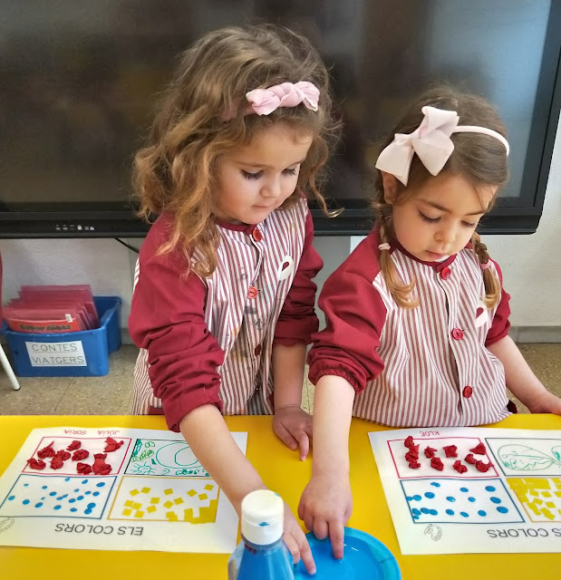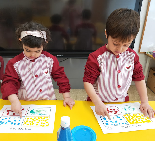 Estem treballant els colors i aquesta és una de les activitats que hem fet utilitzant diferents tècniques.