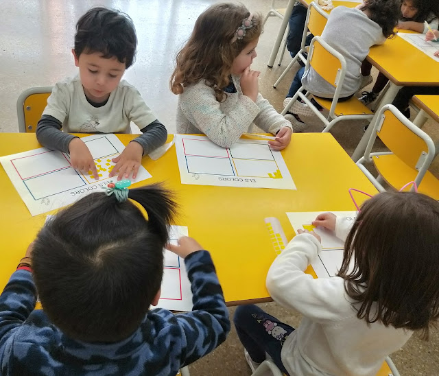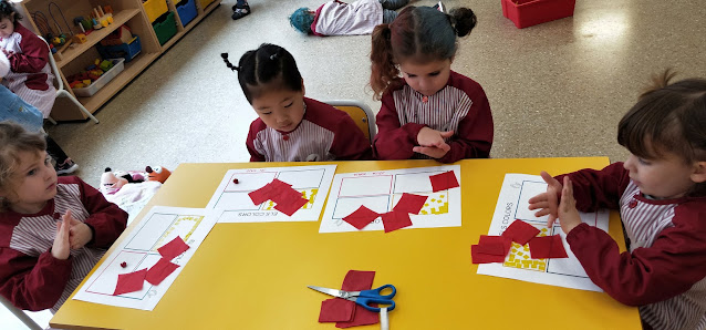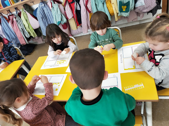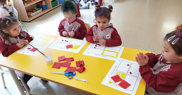 Hem enganxat gomets quadrats petits en el rectangle de color groc…..