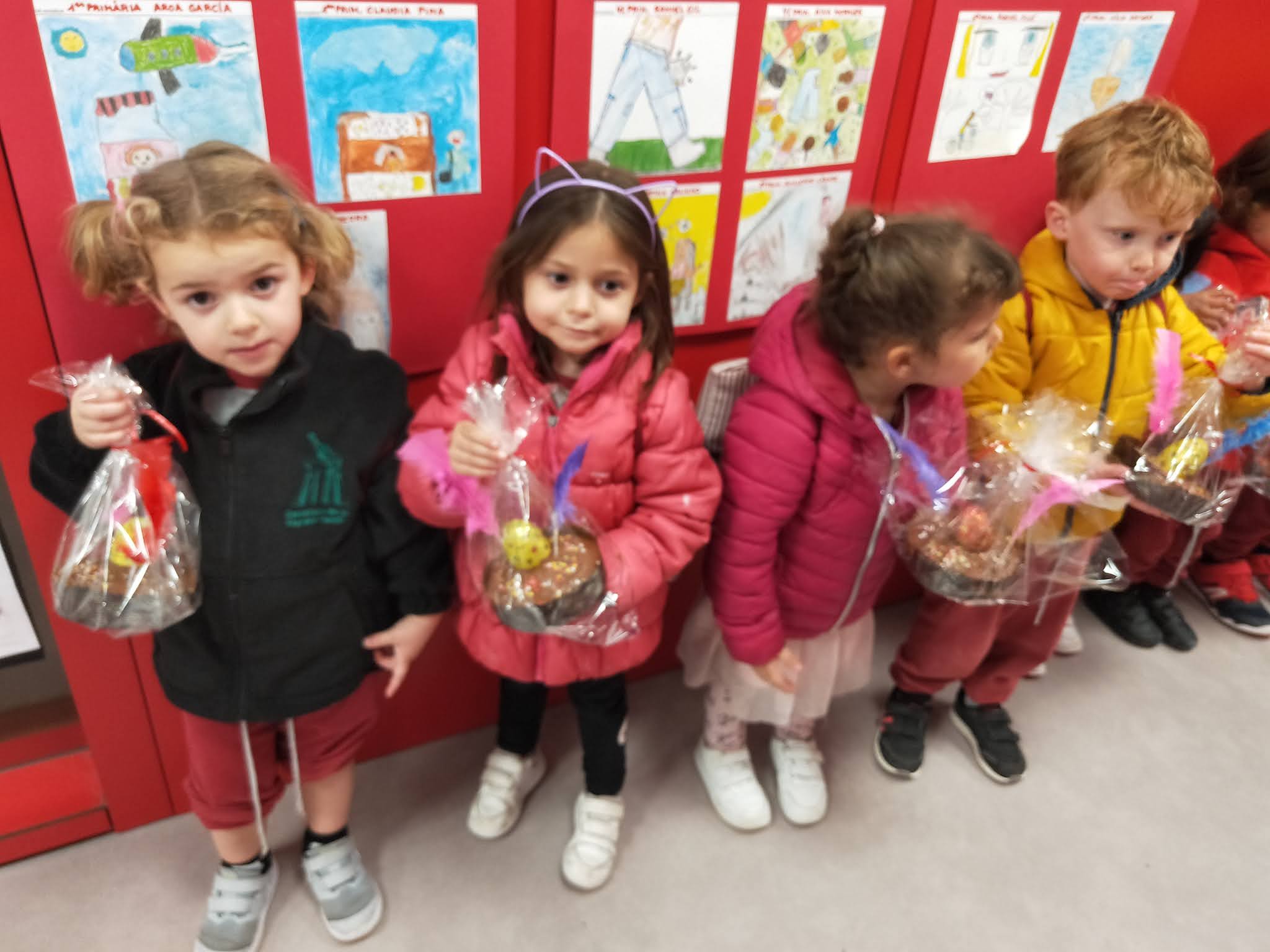 Ens hem posat la mascareta i les hem decorat. L’Anna ha tret el tros del mig per poder posar-hi l’ou, posava xocolata sobre la mona i amb una cullereta la repartien….. Han triat el color de l’ou, l’han posat al mig i pel voltant han deixat anar estrelletes de sucre per decorar. Finalment han triat els colors de les plomes i les han posat.