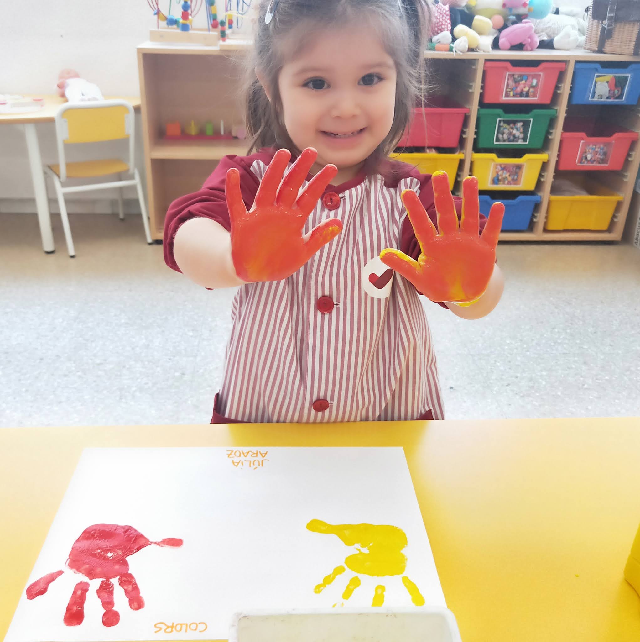 Estem treballant la unitat didàctica “Els colors” i hem experimentat amb pintura. Hem pintat amb el color groc, amb el color vermell i……..