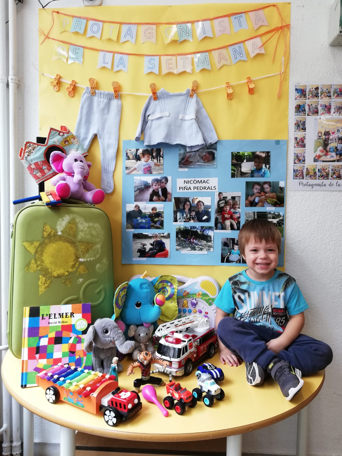 En Nicòmac ha arribat a l’aula amb la seva mare. Molt carregats amb la maleta plena de coses, el póster, bosses…