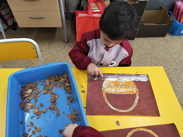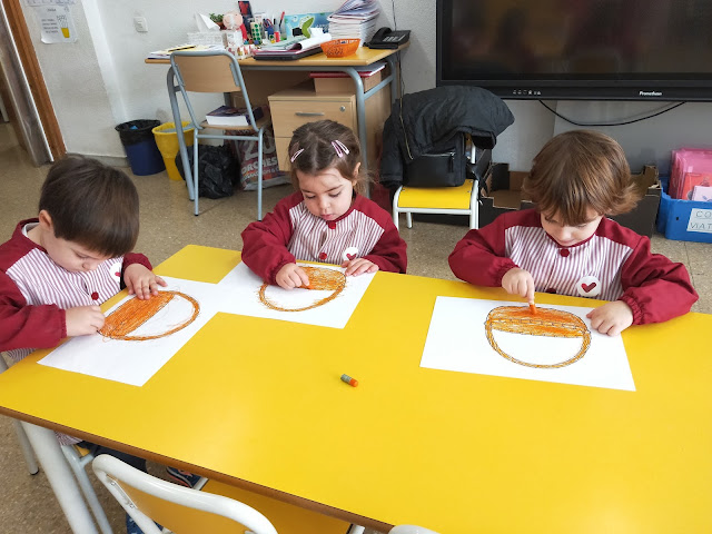 En un altre moment hem pintat un cistell amb ceres de color taronja…