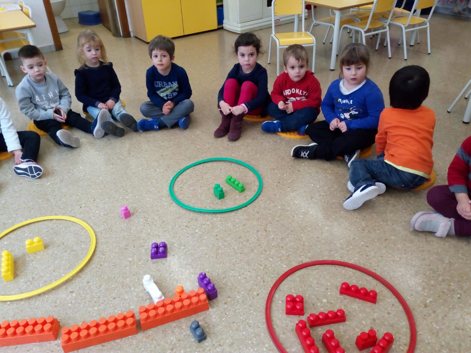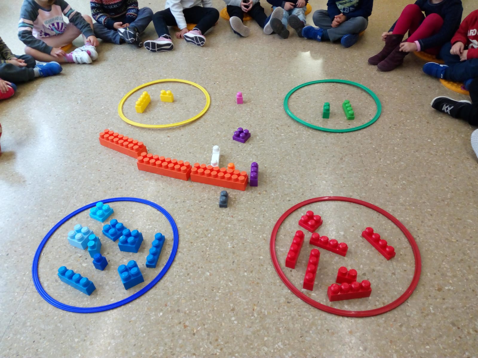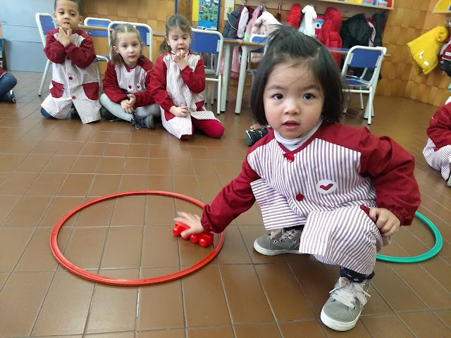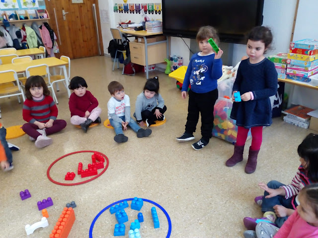 Una vegada hem treballat els quatre colors: groc, blau, vermell i verd. Havia arribat el dia de classificar objectes de l’aula per colors. Mireu que bé ens ho vam passar els Peixets i els Elefants i les Elefantes.