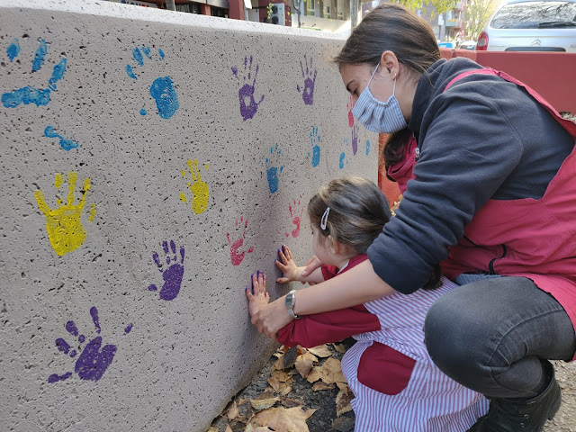 Avui els Koales i les Vaques hem estampat les nostres mans al mur de formigó! A veure si trobeu les mans de les vostres filles i fills…