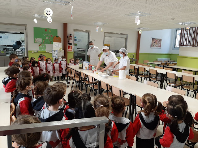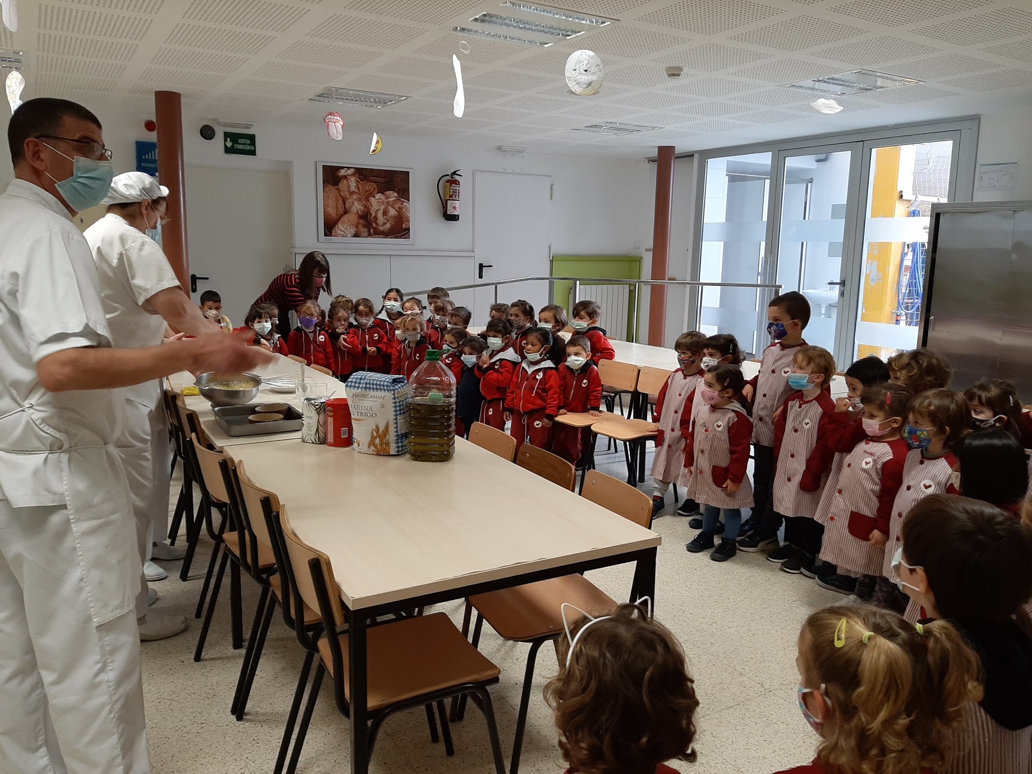 Hem visitat la cuina, on el Jordi, l’Elvira i la Rosa ens han explicat molt bé els ingredients (oli, farina, sucre, iogurt i llevat) i el procediment per fer la mona de Pasqua.