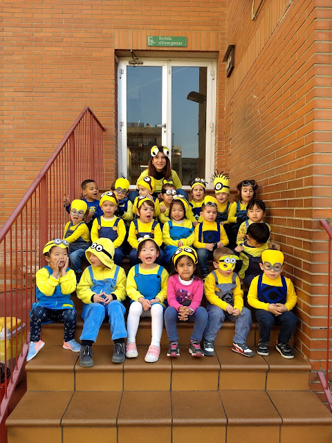 El divendres per celebrar el dia de Carnestoltes tots els alumnes i mestres d’Educació Infantil ens vam disfressar de MINIONS. Mireu quants Minions!!!