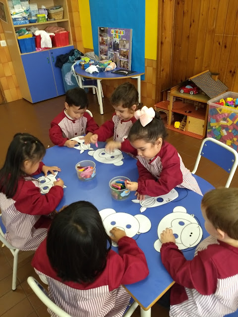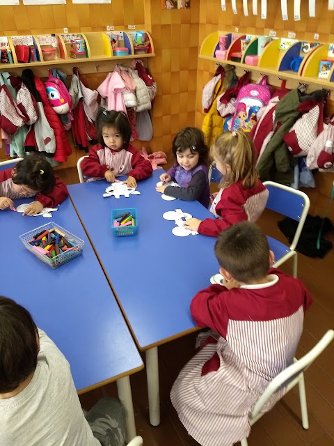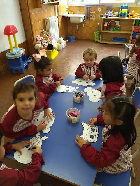 I per acabar ens han portat unes màscares dels personatges del conte: De què fa gust la lluna? per pintar i decorar