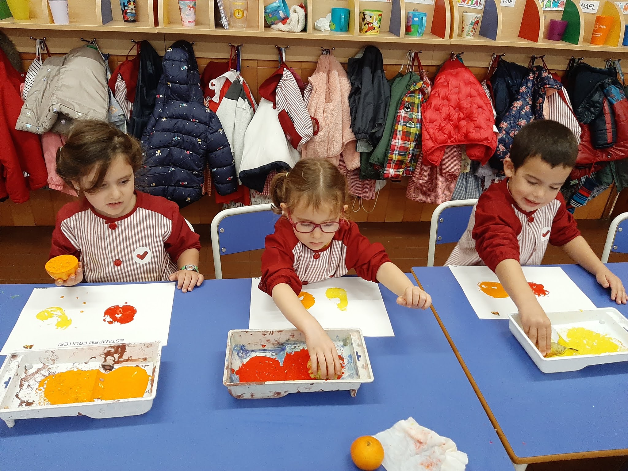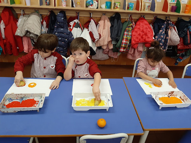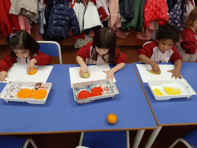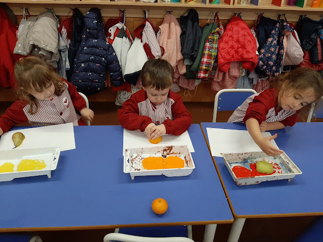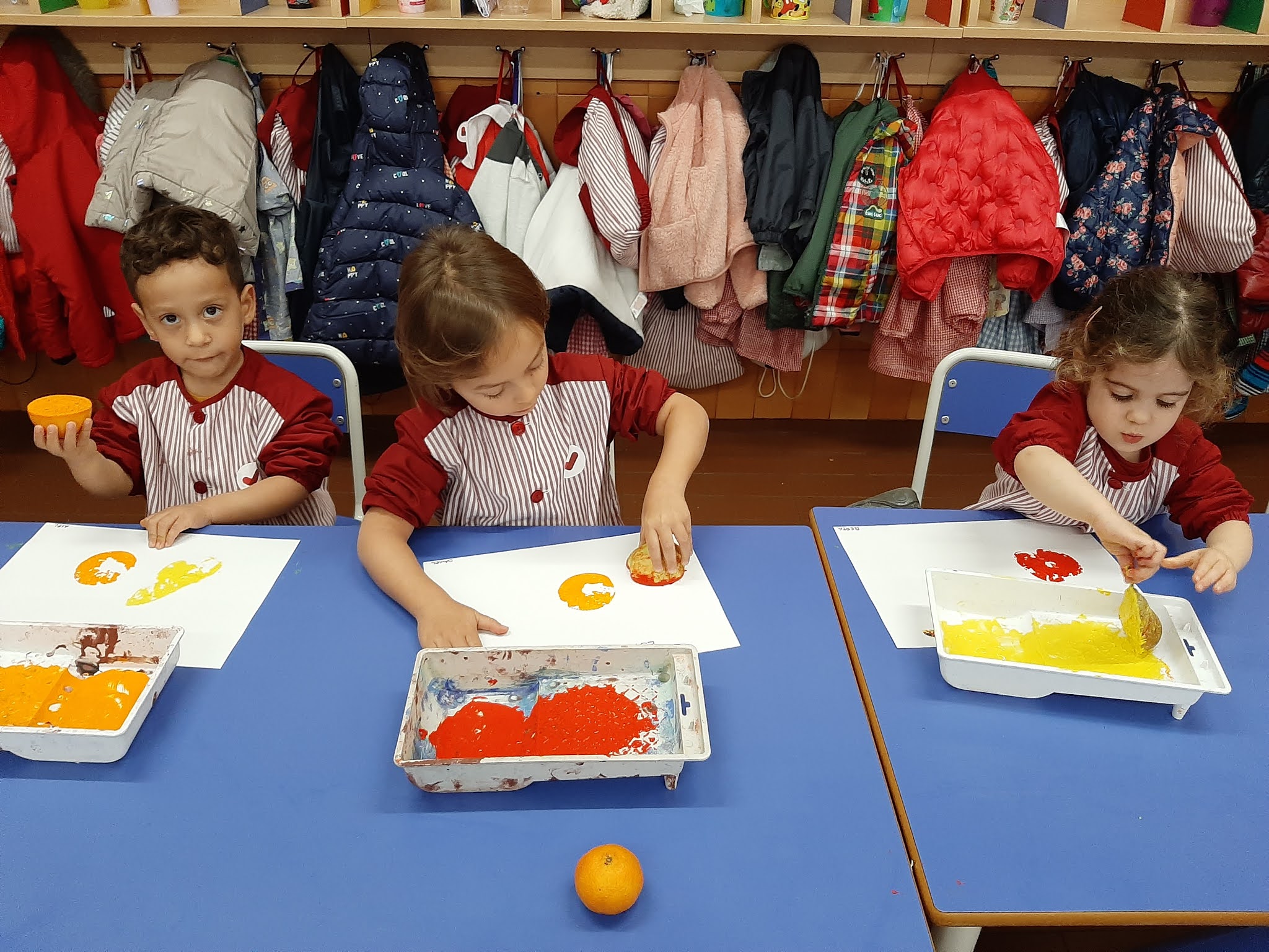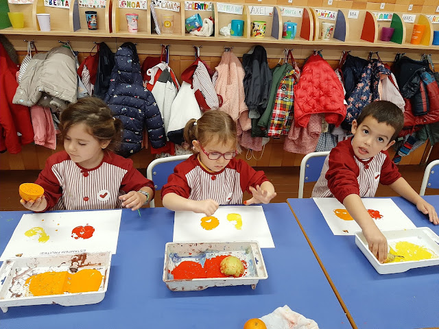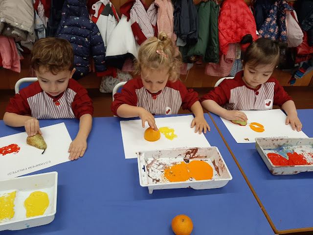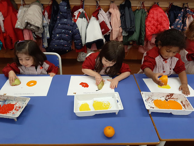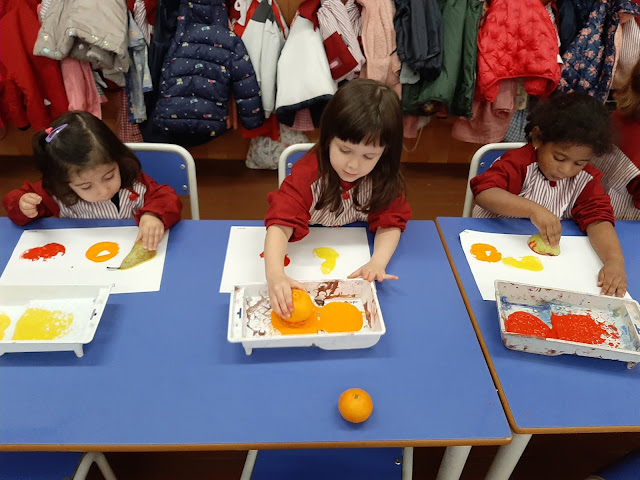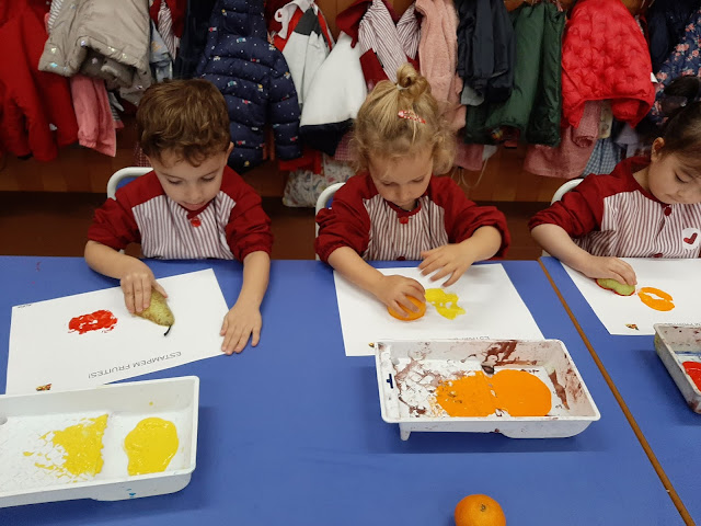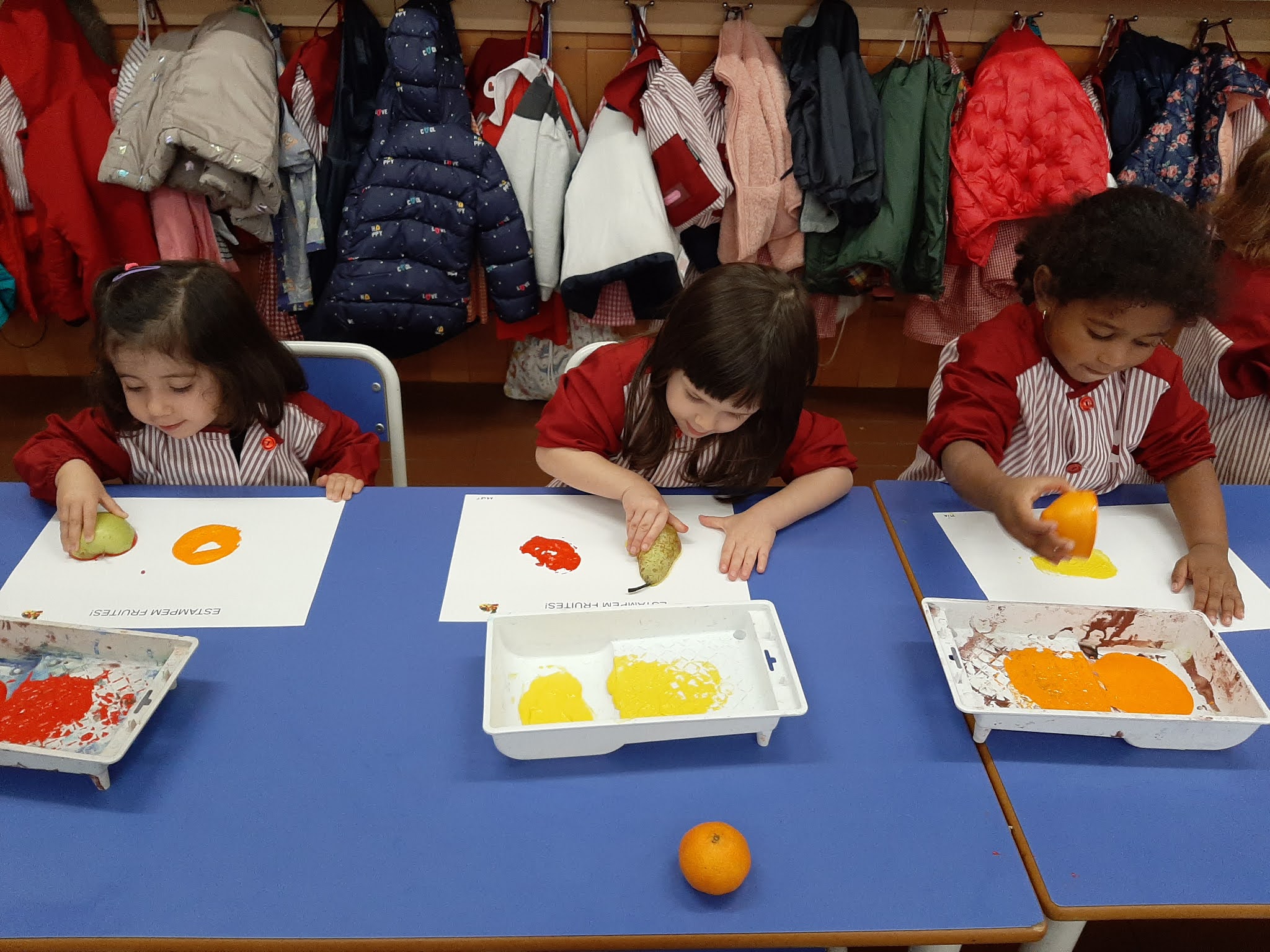 Les Vaques estampem fruita amb els colors de la tardor! Amb una pera, una poma i una taronja ens han quedat aquestes boniques creacions…