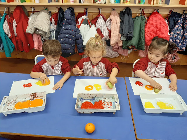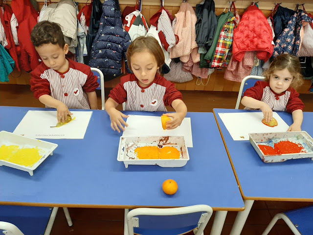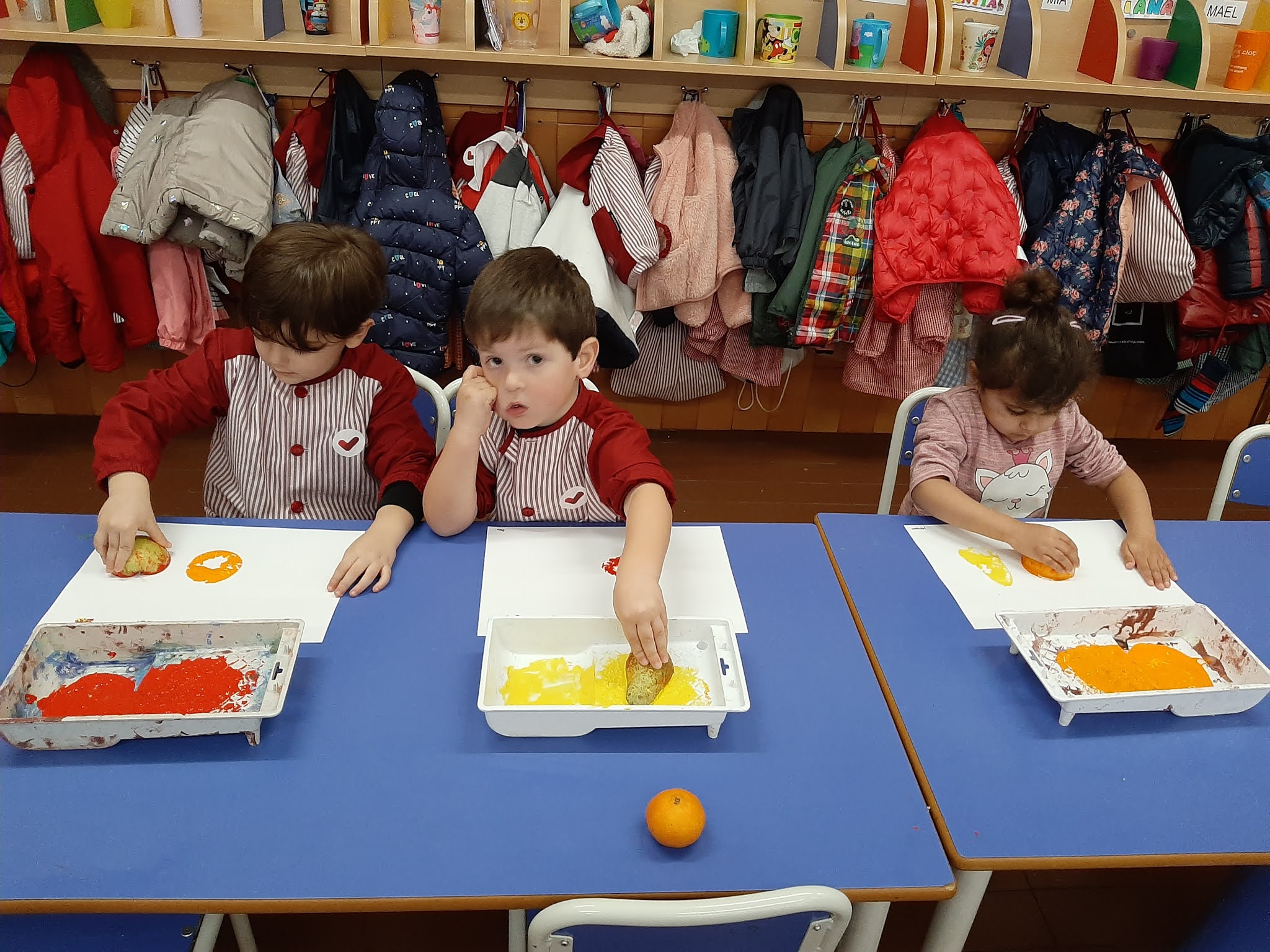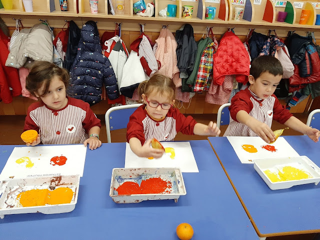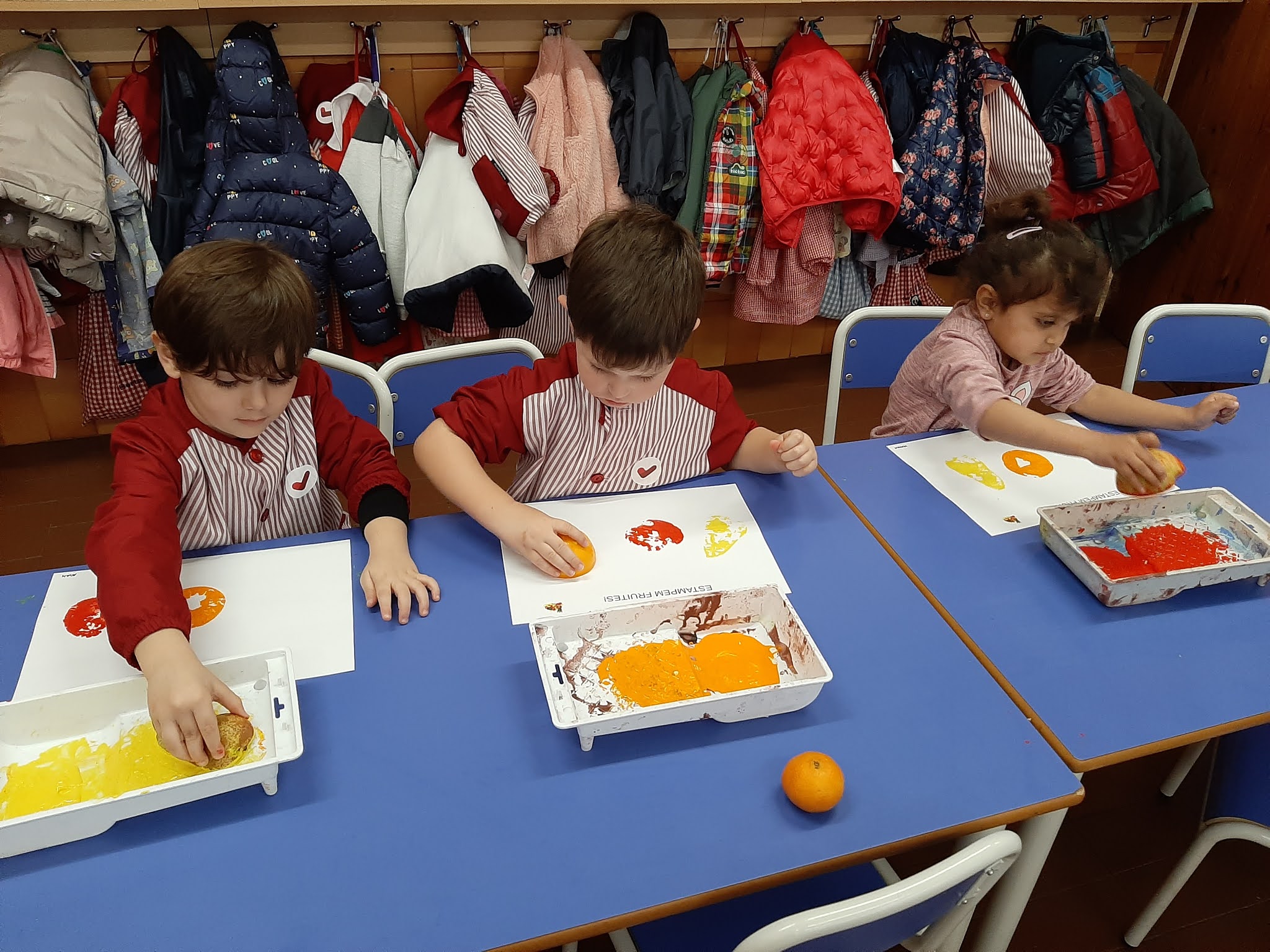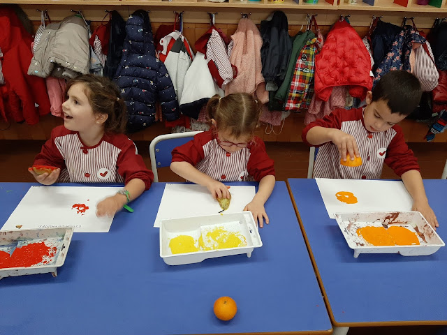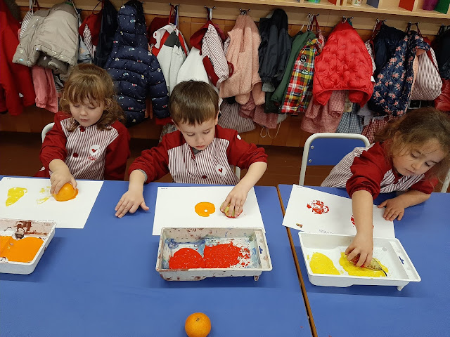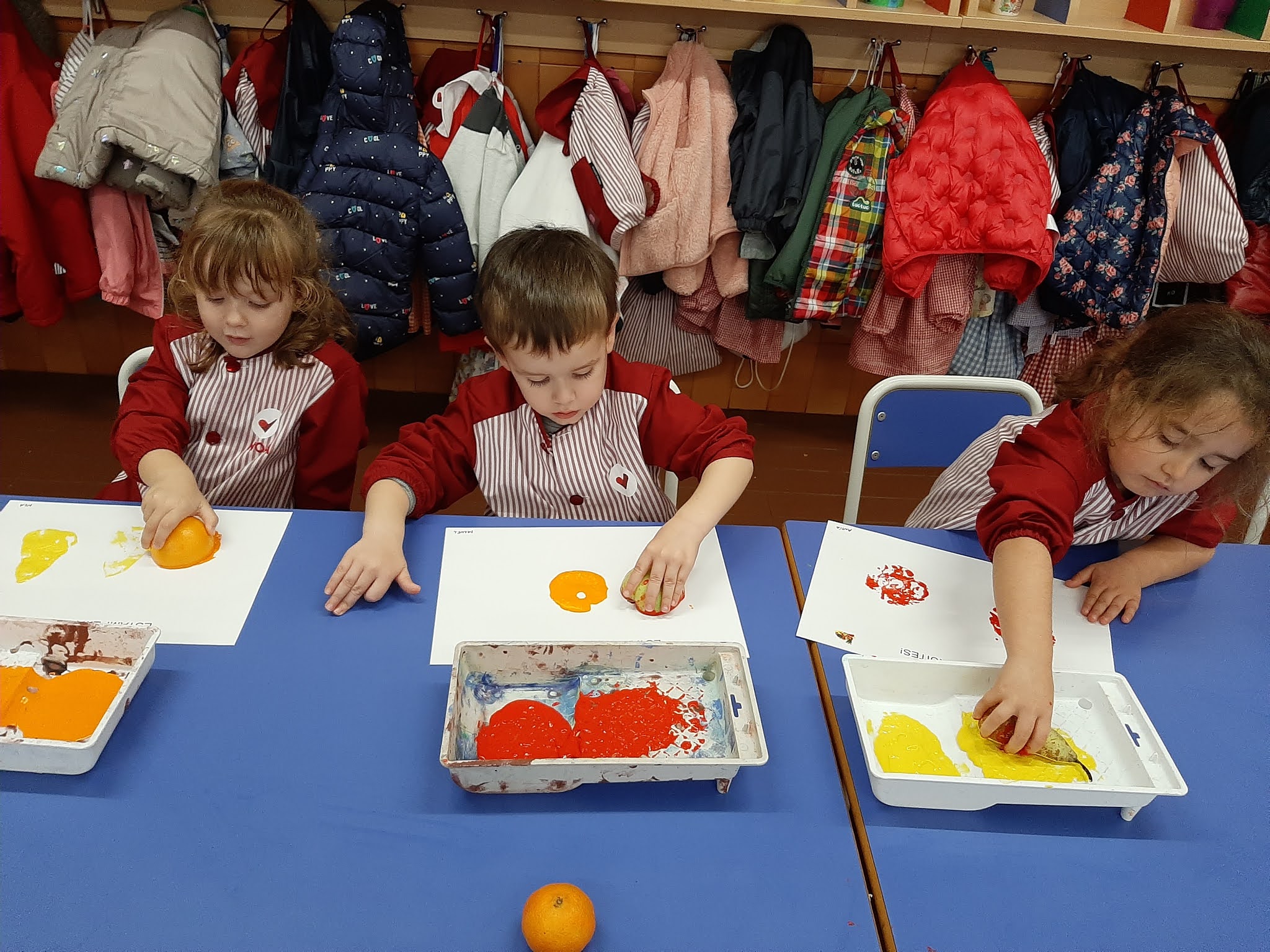 Les Vaques estampem fruita amb els colors de la tardor! Amb una pera, una poma i una taronja ens han quedat aquestes boniques creacions…
