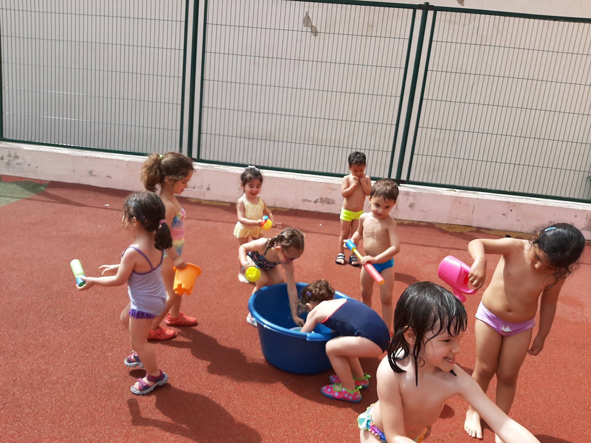 Ens ho hem passat molt i molt bé mullant-nos i fent joc d’aigua al pati dels colors, mireu mireu…