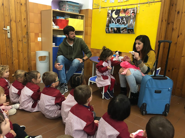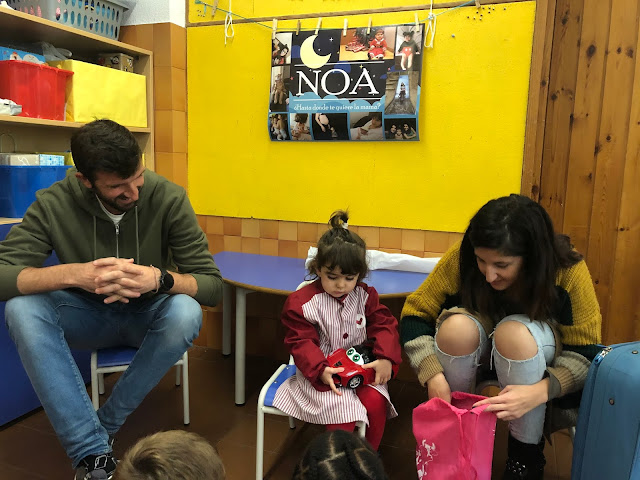 Dilluns va arribar a l’aula acompanyada de la seva mare i el seu tiet! Primer ens van ensenyar el mural de fotos, i a continuació tot el que portaven dins la maleta. A la Noa li agraden molt els cotxes i va portat uns quants per jugar durant tota la setmana amb els companys i companyes. Que bé!
