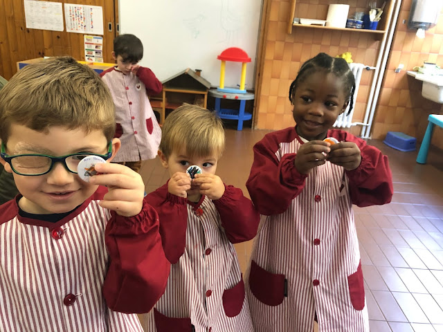 Finalment vam fer l’activitat! Primer ens van demanar que féssim un dibuix dins d’uns cercles que ens havien preparat. I després… SORPRESA! Amb un aparell que van portar, del nostre dibuix sortia una xapa! Alaaa!
