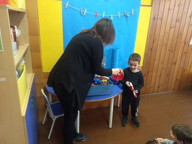 L’Hugo va arribar el dilluns amb la maleta de l’aula plena de coses: