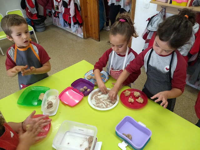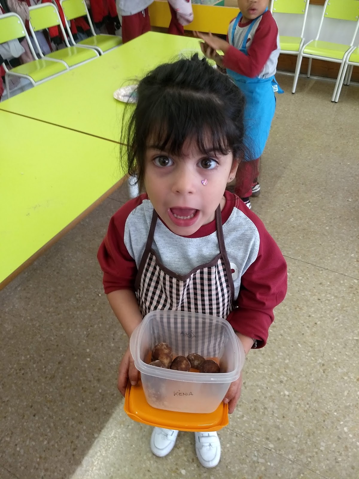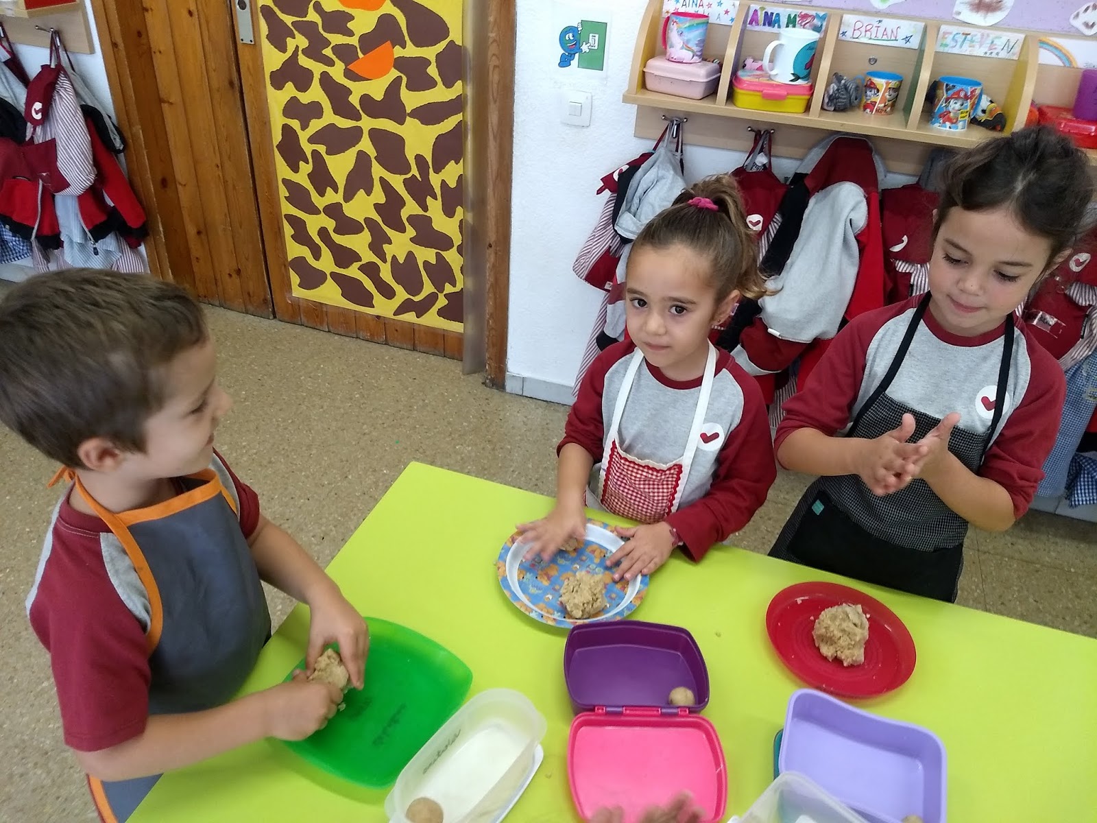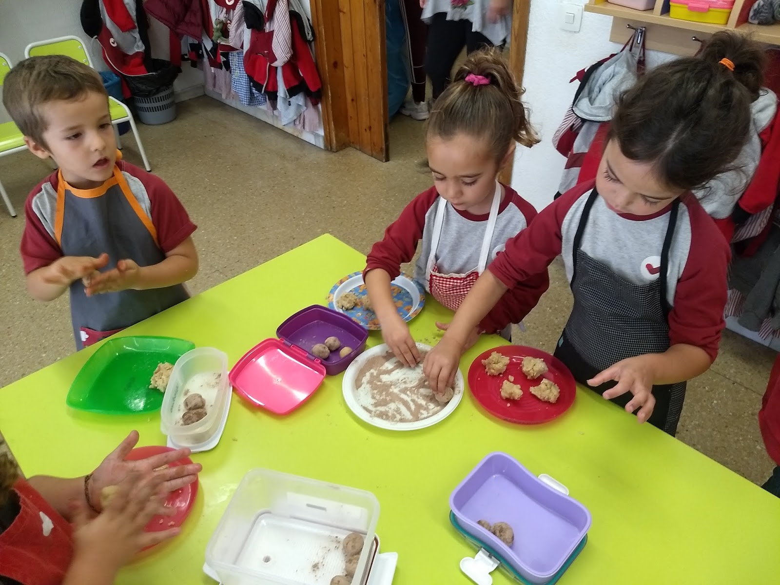 El passat dijous dia 31 d’Octubre a la classe de les Girafes vam celebrar la festa de la Castanyada, i quina millor manera de fer-ho que preparant uns panellets boníssims!!!