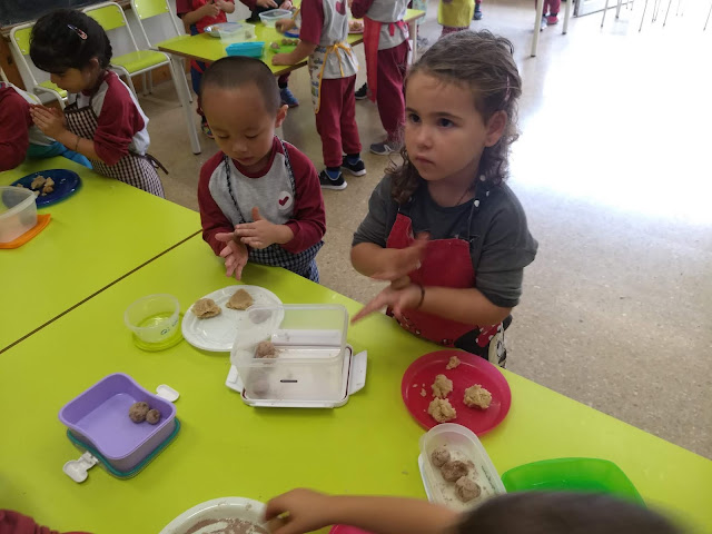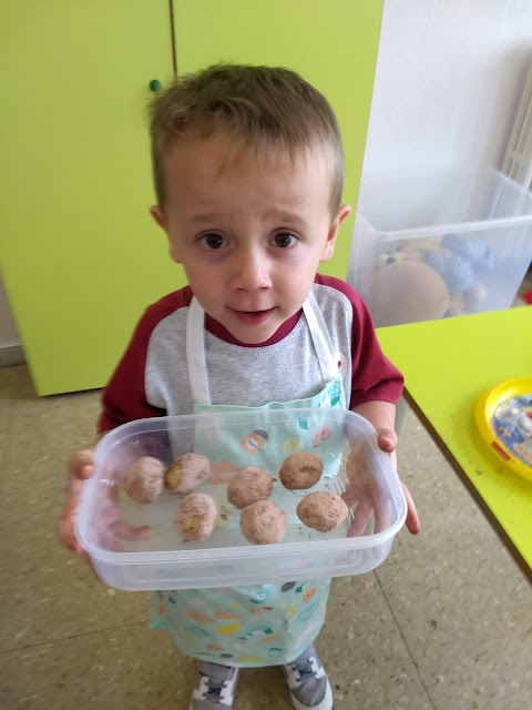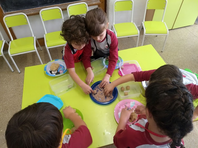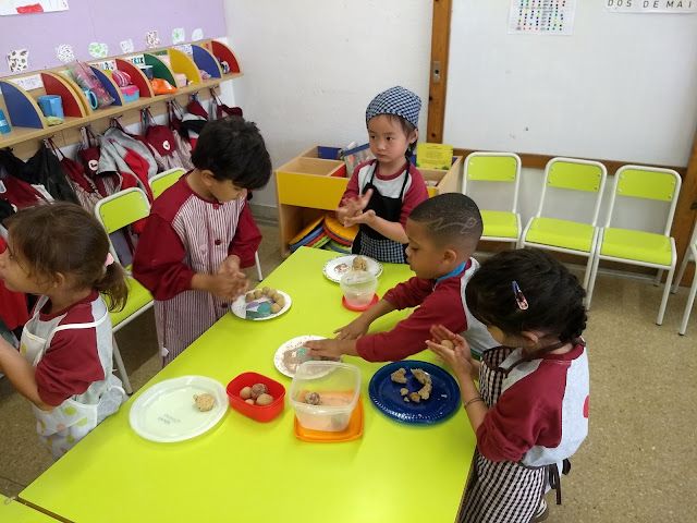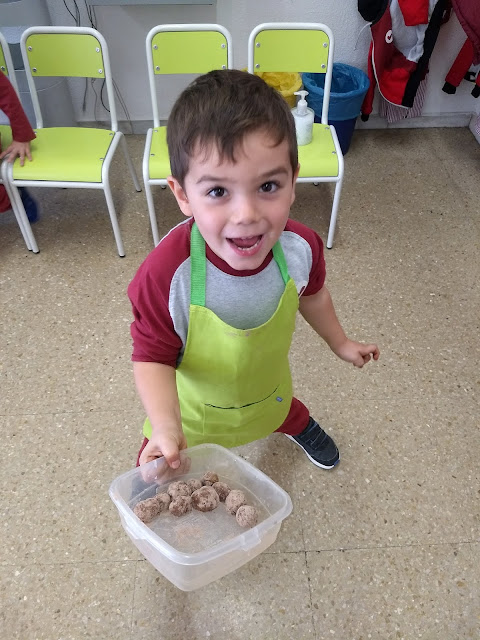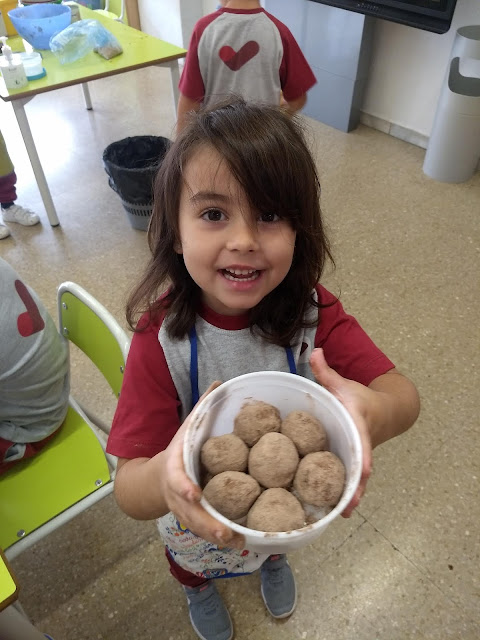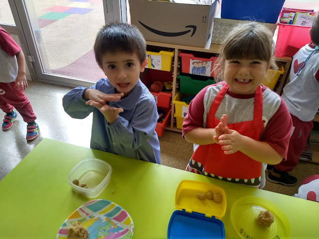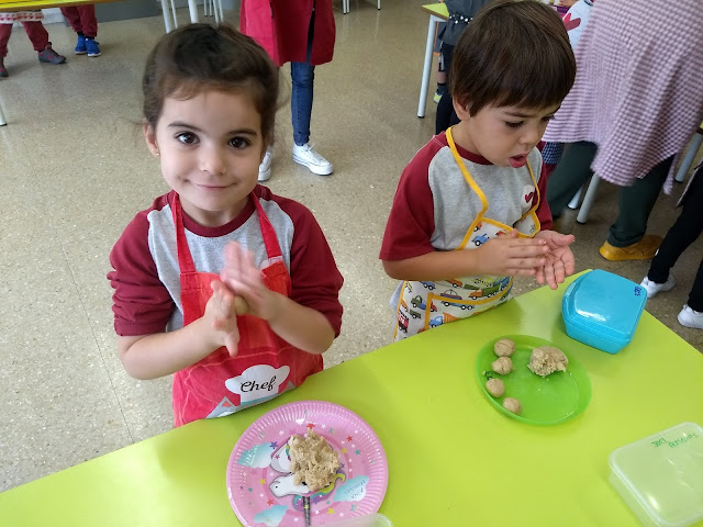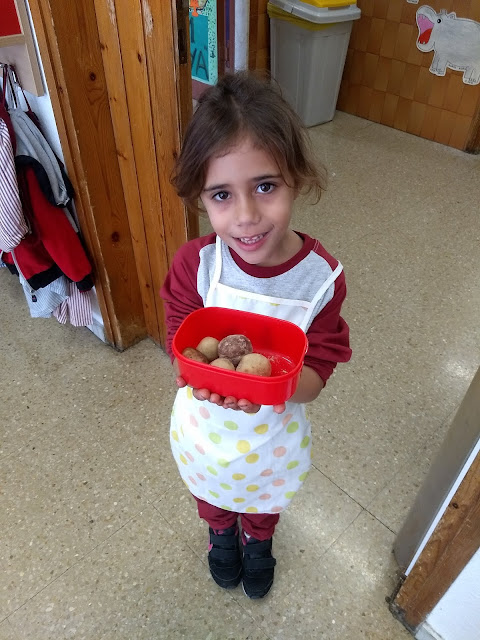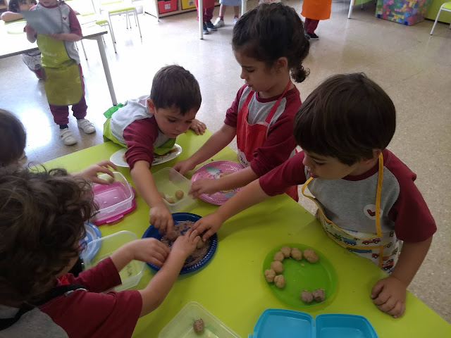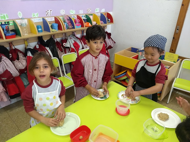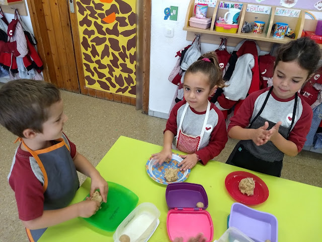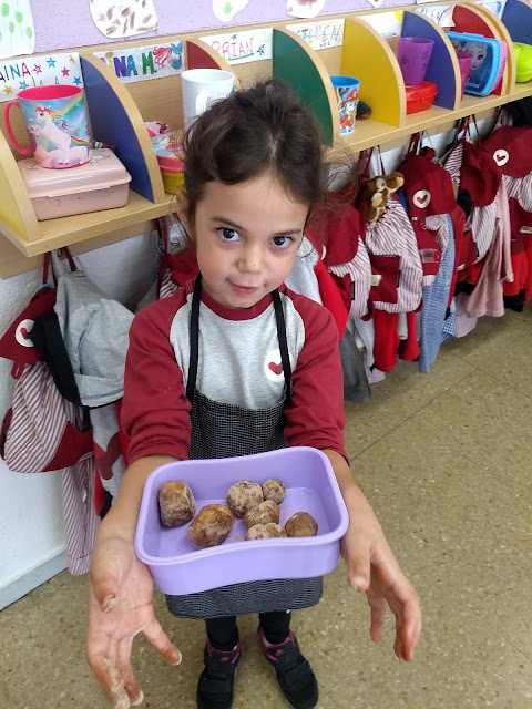 El passat dijous dia 31 d’Octubre a la classe de les Girafes vam celebrar la festa de la Castanyada, i quina millor manera de fer-ho que preparant uns panellets boníssims!!!