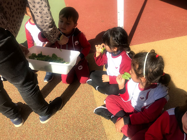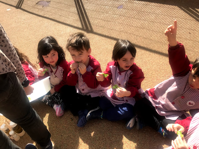 Avui les nenes i nens de les classes dels Unicorns i dels Coets hem anat a l’hort i hem collit uns enciams preciosos que teniem al nostre hort. Després els hem netejat, li hem posat oli i sal i ens els hem menjat! Estaven boníssims!!!